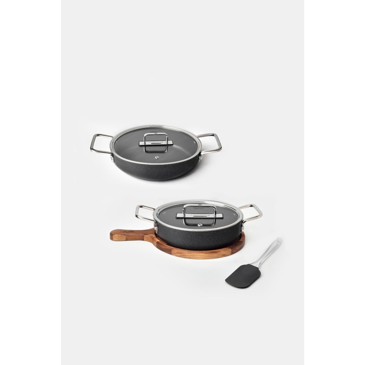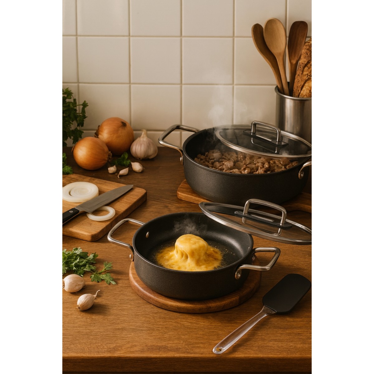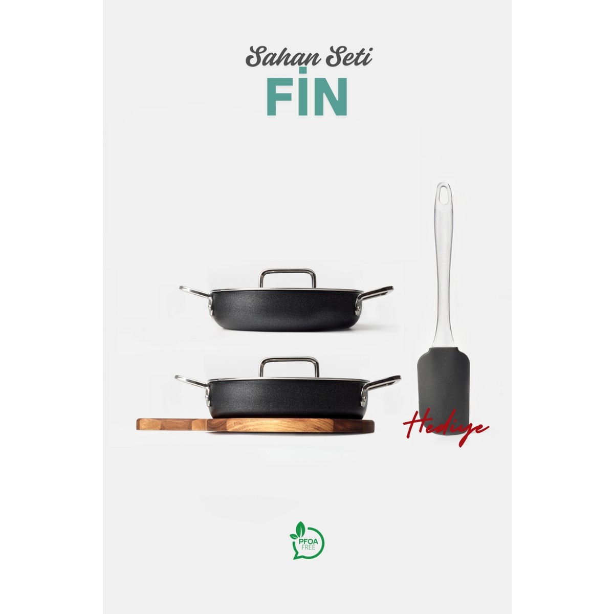 Fin Sahan Seti, yüksek kaliteli titanyum iç yüzeyi sayesinde yiyeceklerin yapışmasını önler ve mükemmel pişirme deneyimi sunar. Yapışmaz taban özelliği ile sağlıklı ve kolay pişirme sağlar.Set içeriğindeki farklı boyutlar sayesinde büyük porsiyonlar ve küçük yemekler rahatlıkla hazırlanabilir. Sunum tahtası ve spatula ile servis ve hazırlık işlemleri pratikleşir.Türkiye’de yerel malzemelerle üretilmiş olup, yerli üretim kalitesi ve güvenini evinize taşır.