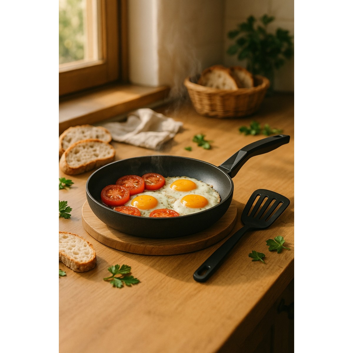 24 cm tava, et, sebze, yumurta, omlet gibi günlük yemeklerin hazırlanması için ideal boyuttadır. Tek parça yapısıyla ekstra parçaya ihtiyaç duymadan rahatlıkla kullanılabilir.