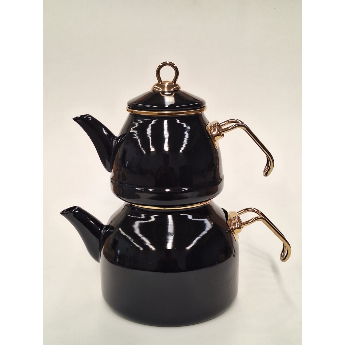 Gizem Emaye Çaydanlık Takımı // Siyah Gold // üst 1300 ml // alt 2600 ml