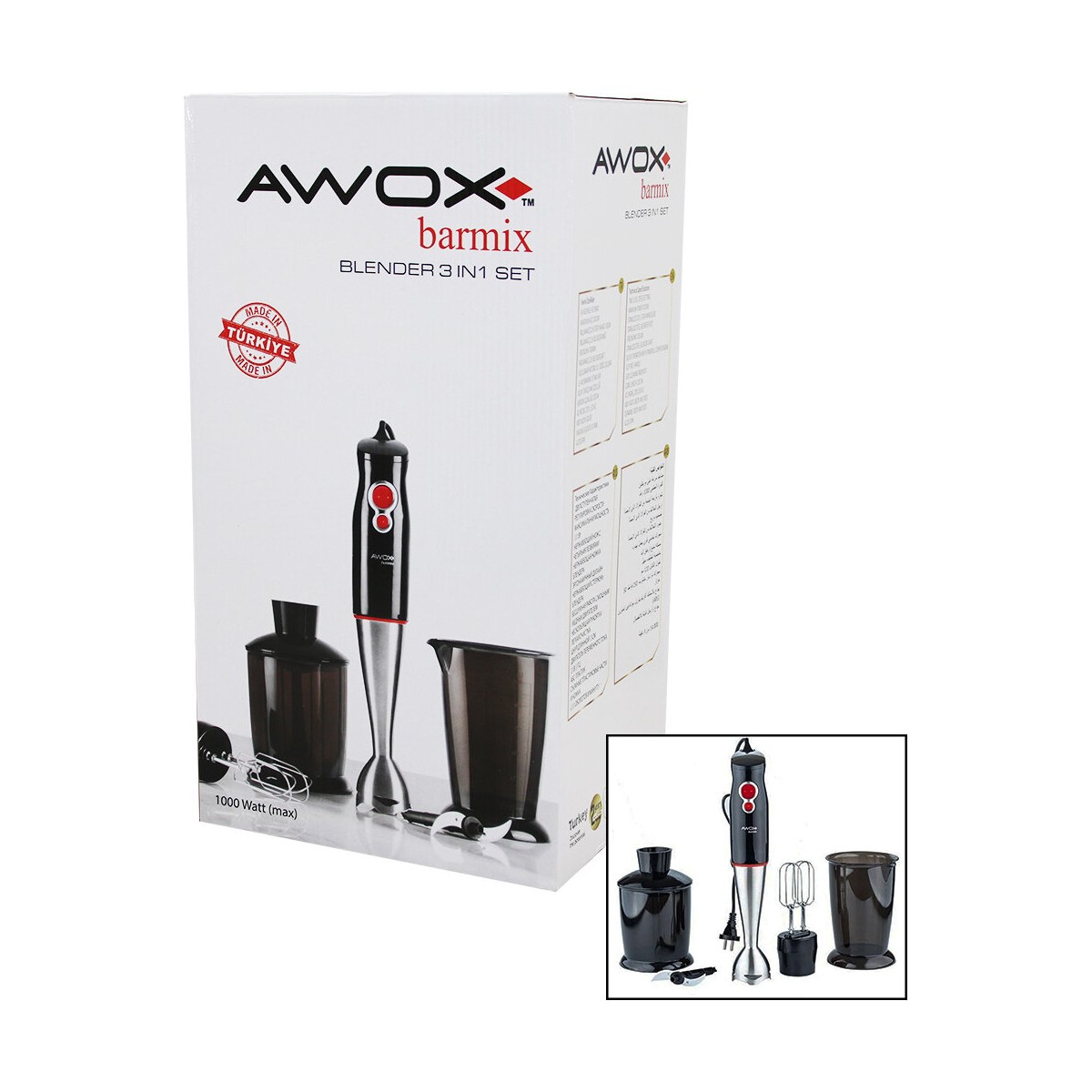 AWOX BARMİX 3İN1 BLENDER SETİ ÇELİK 2Lİ MİKSER ÇELİK RONDO BIÇAK ÇELİK 4 KANATLI BIÇAK 1000W