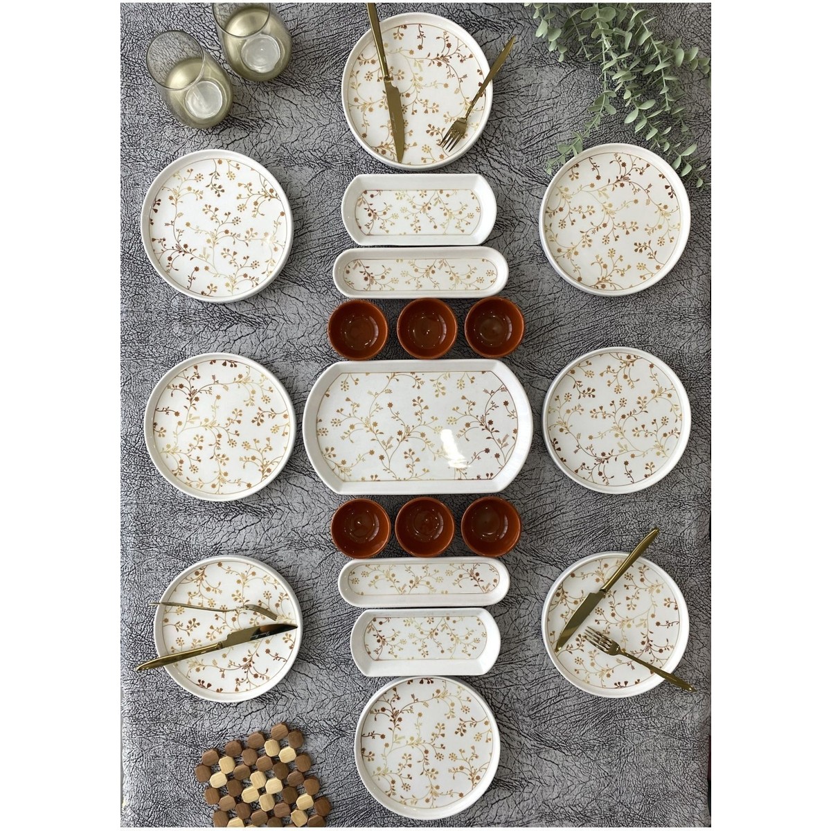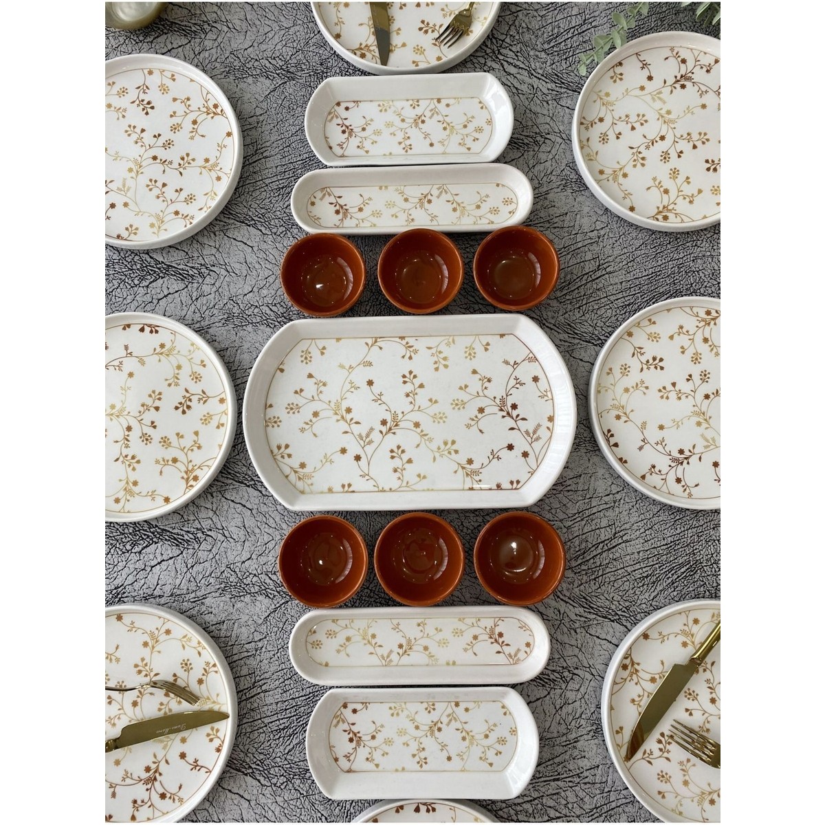 Gold Eliz 8 Kişilik 19 Parça Kahvaltı Takımı: – 8 adet 20 cm Servis Tabağı -6 adet kiremit sosluk -2 adet zeytinlik -2 adet peynirlik – 1 adet büyük servis&sunum tabağından oluşmaktadır.; Ürünlerimiz özenle paketlenip kargolanmaktadır.; Kırık ürün garantisi vardır.