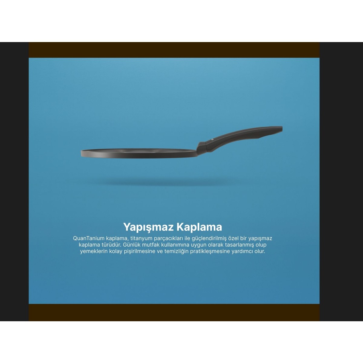 Üç katmanlı titanyum takviyeli PTFE kaplama ile pankeklerinizi kusursuz şekilde pişirin. Aşınma, çizilme gibi olumsuz durumlara karşı son derece dayanıklı. Üstelik PFOA ve Nikel içermez, sağlıklı ve güvenli bir kullanım sunar.