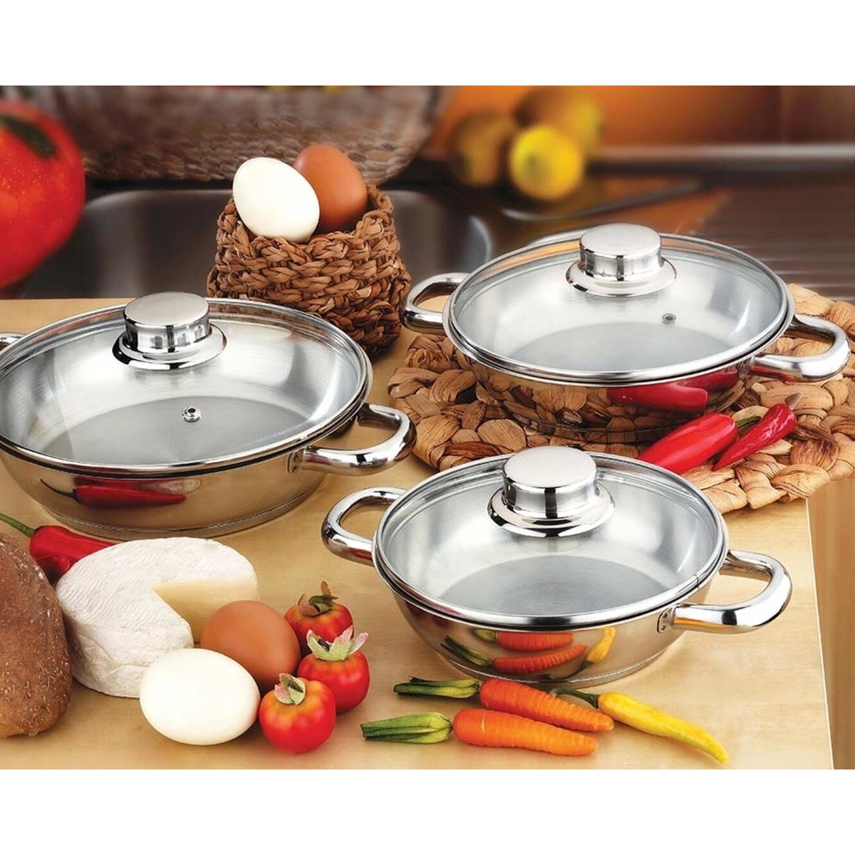 Gülsan 6 Parça Cam Kapaklı Paslanmaz Çelik Omlet Tencere Seti (16 cm, 18 cm, 20 cm)
