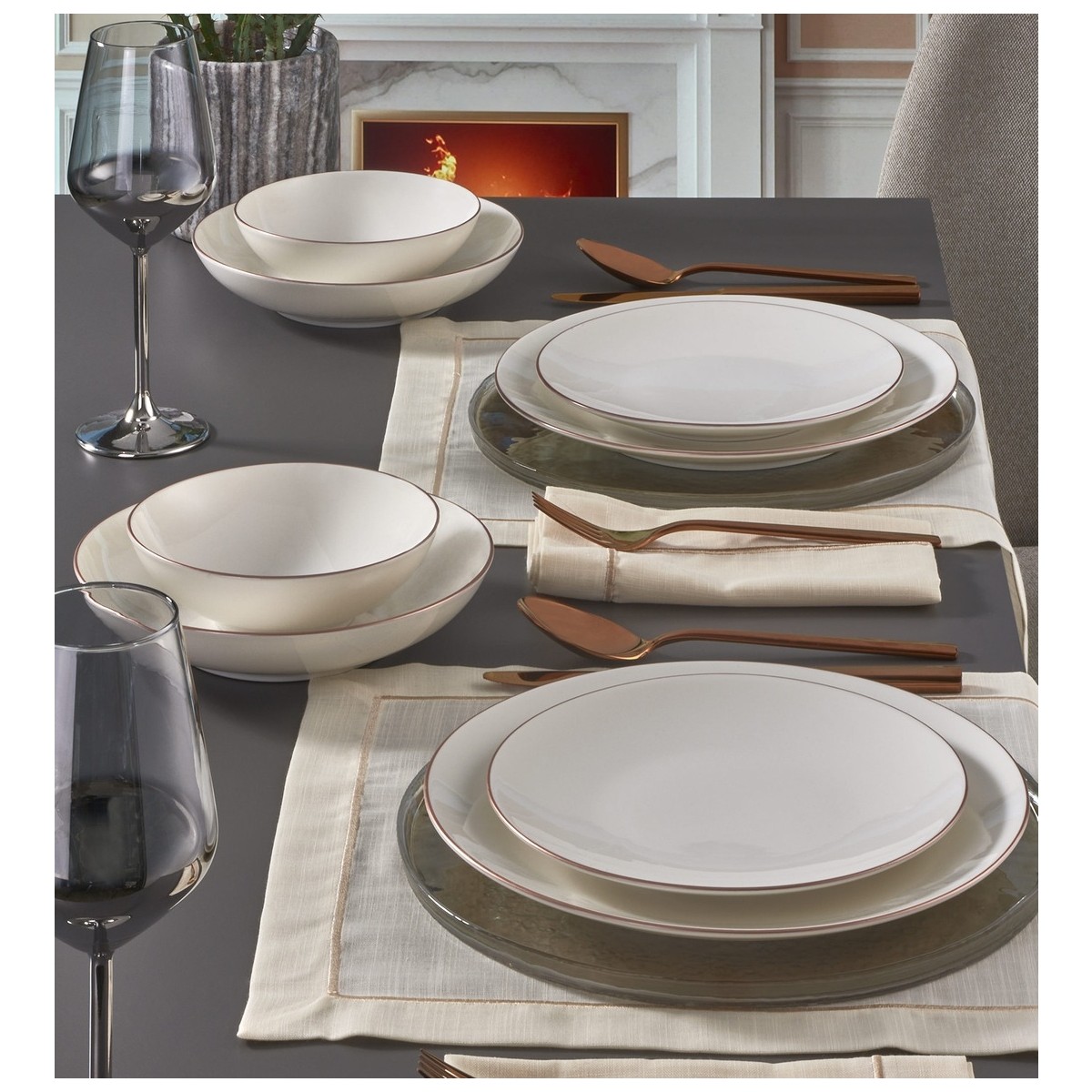 Güral Porselen Atina 24 Parça Copper Bakır 6 Kişilik Bone Porselen Yemek Takımı Güral Porselen Elegant Yemek