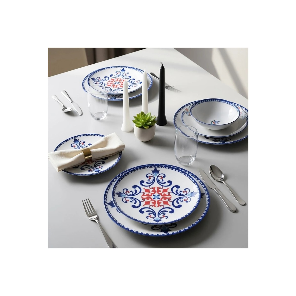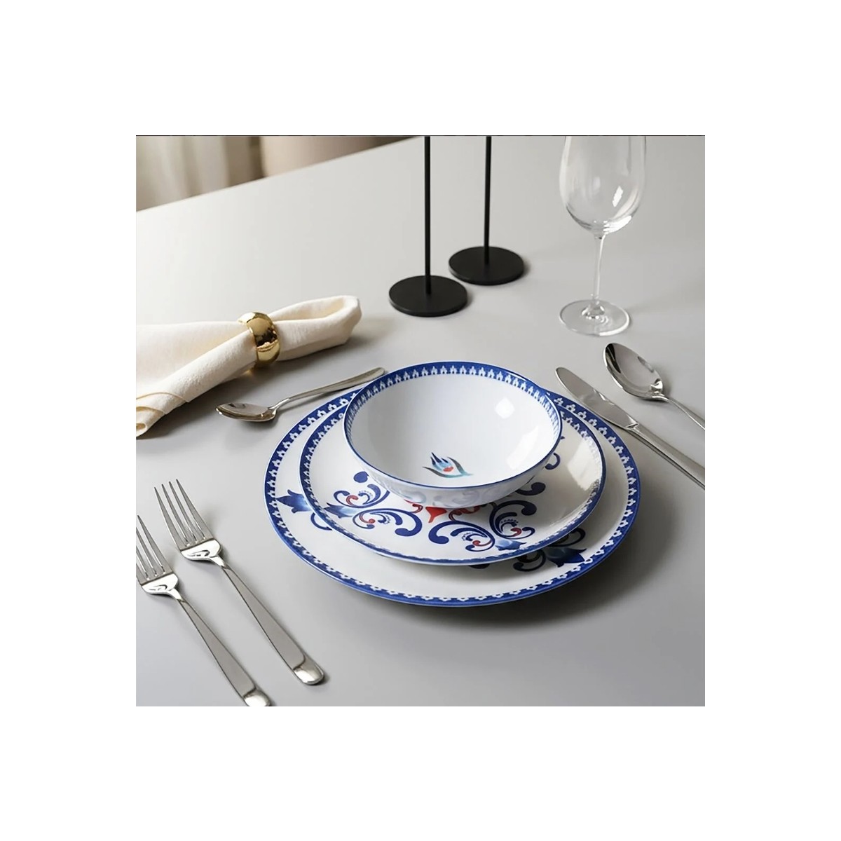 Sofranıza Sanat KatınGüral Porselen Atina 24 Parça Yemek Takımı, köklü Türk desen geleneğinden ilham alan zarif motifleriyle sofralarınıza hem estetik hem de kültürel bir değer kazandırıyor. Mavinin huzurunu, kırmızının canlılığını ve beyazın asaletiyle birleştiren bu tasarım; her öğünde göze hitap eden, unutulmaz bir atmosfer yaratır.Davetlerden Günlük Sofralaraİster aile yemeklerinde ister özel davetlerde… Atina serisinin desenleri sofranıza seçkin bir hava katar. Çorba kaselerinden pasta tabaklarına kadar her parça, yemeklerinizi yalnızca sunmakla kalmaz; onları görsel bir şölene dönüştürür.Zamansız ŞıklıkKlasik Türk sanatının modern yorumu olarak tasarlanan Atina yemek takımı, hem geleneksel hem çağdaş sofralara uyum sağlar. Yıllar geçse de modası eskimeyen desenleri, sofranıza her daim şıklık ve zarafet katmaya devam eder.