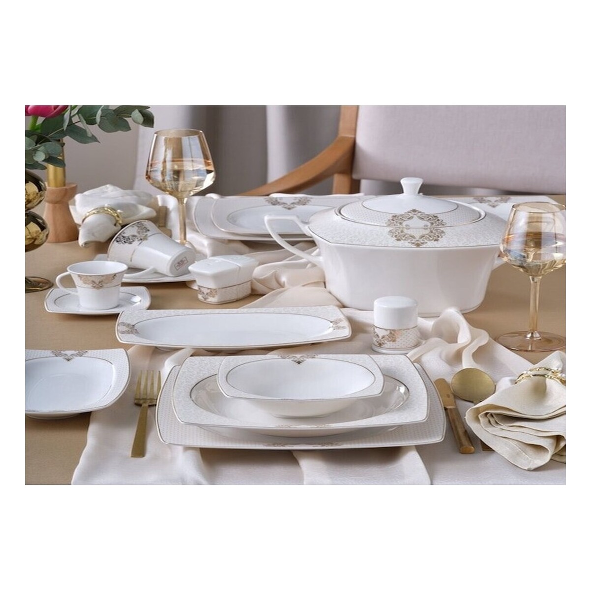 Güral Porselen G&38UUMLRAL Caroline 85 Parça 12 Kişilik Kare Yemek Takımı 6600 Diğer