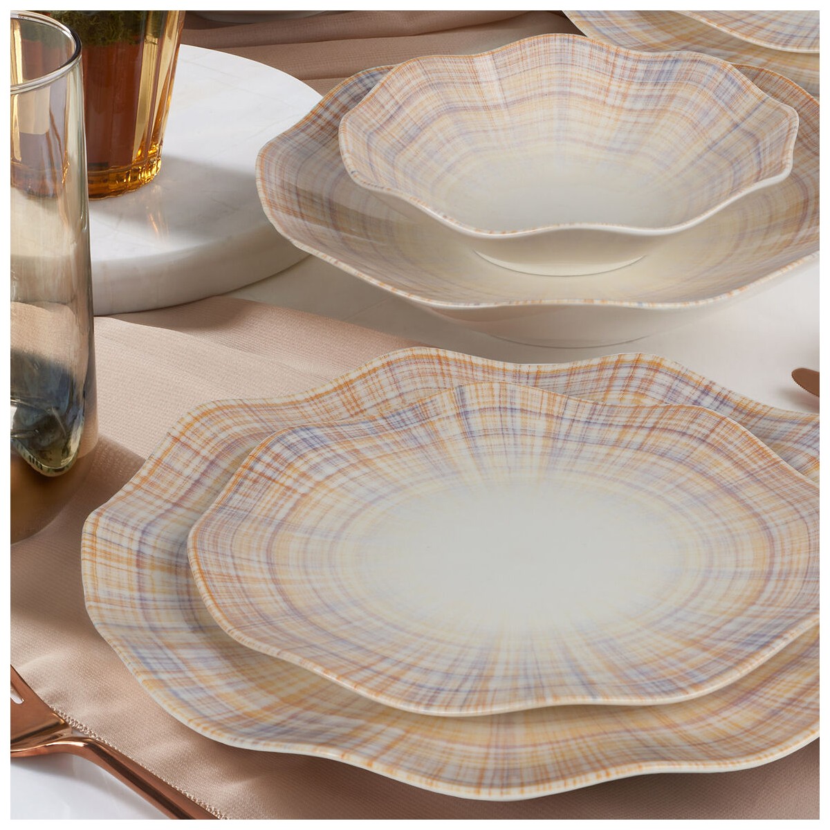 Karaca Square Bone Autumn 60 Parça Beyaz Kare Desenli Porselen Yemek Takımı – 12 Kişilik Şık Tasarım