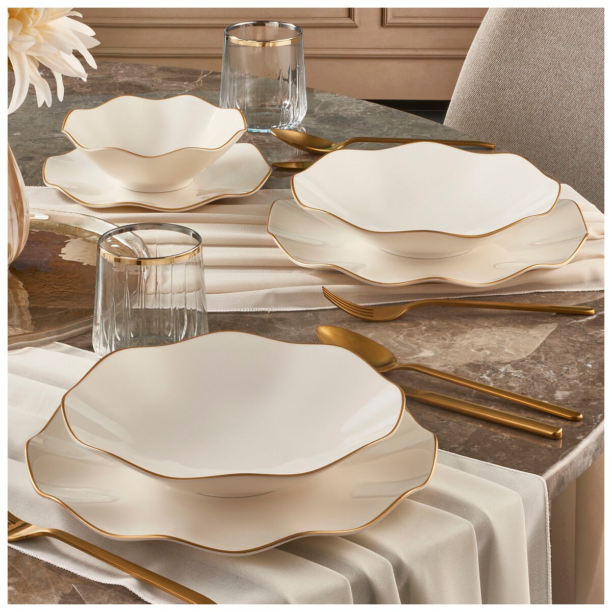 Güral Porselen Nesrin 26 Parça 6 Kişilik Bone Yemek Takımı – Gold