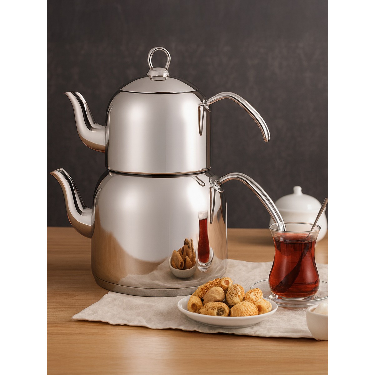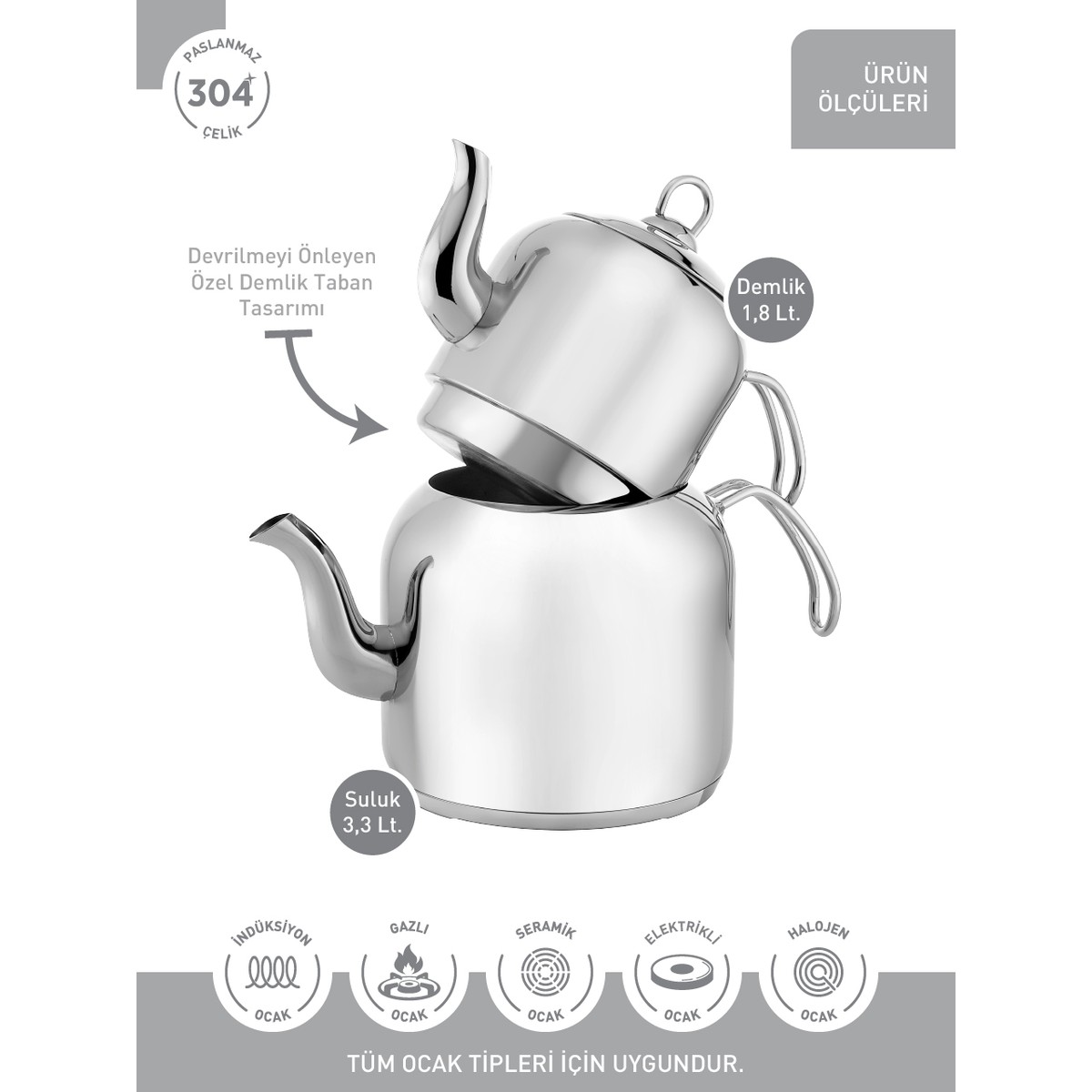 Hascevher Enzo Maxi Aile Boy Çaydanlık 2 lt Paslanmaz Çelik Modern Tasarım