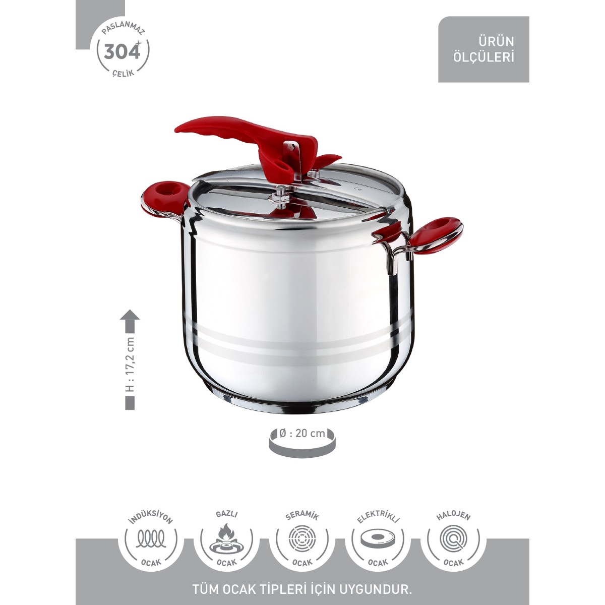 Hascevher Esila 5,0 lt Düz Düdüklü Tencere (Ø20)