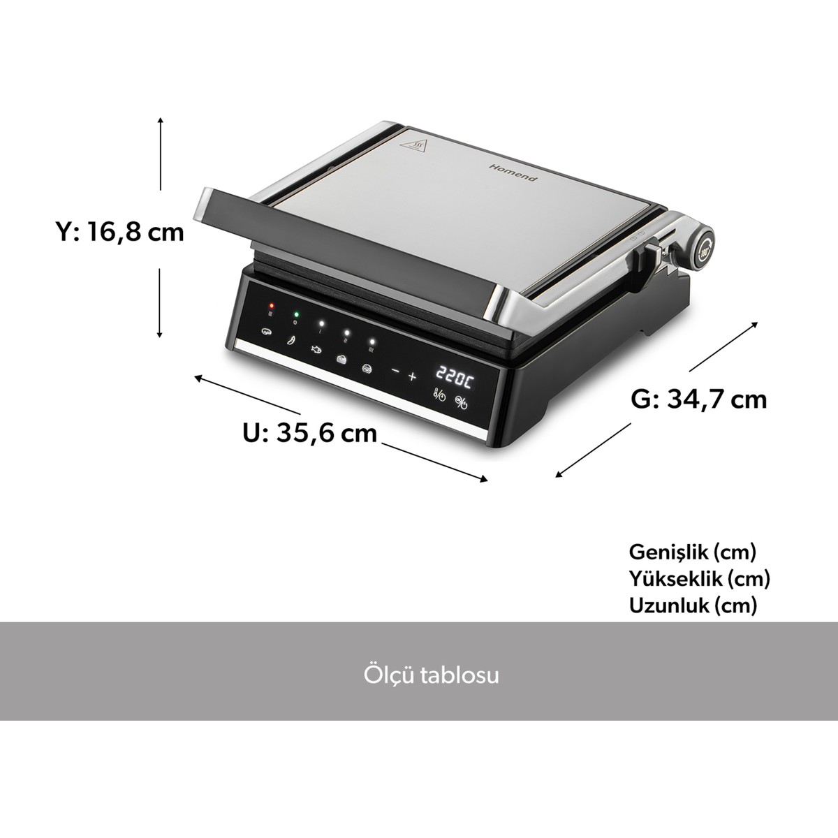 Homend Grilliant 1341H Inox Gövdeli, Döküm Plakalı, 5 Programlı, Led Ekranlı Tost ve Izgara Makinesi