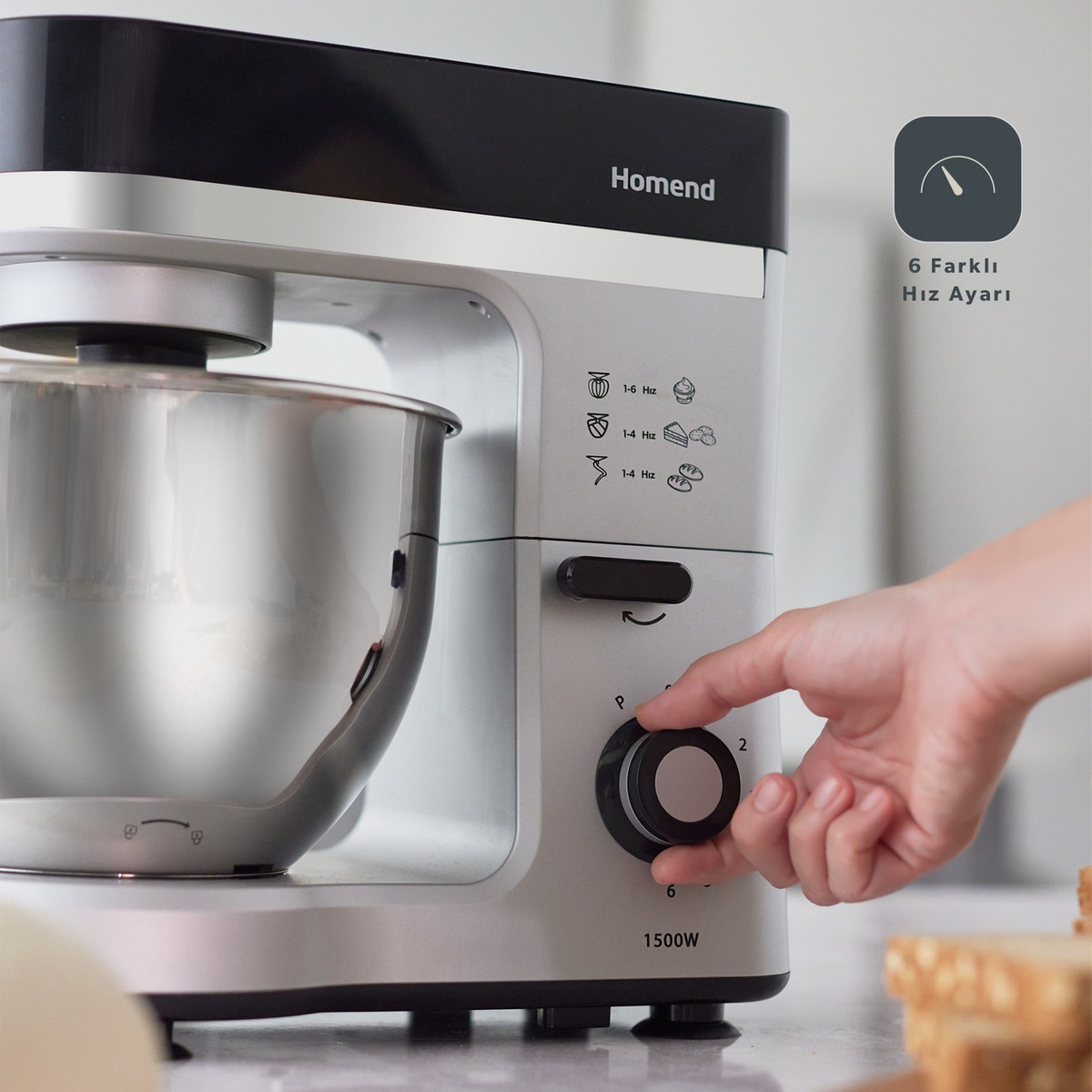 6 Farklı Hız Seçeneği : Stant mikserinizi kullanırken farklı karıştırma hızlarına ihtiyaç duyduğunuzda,6 farklı hız seçeneğinden dilediğinizi seçebilirsiniz.