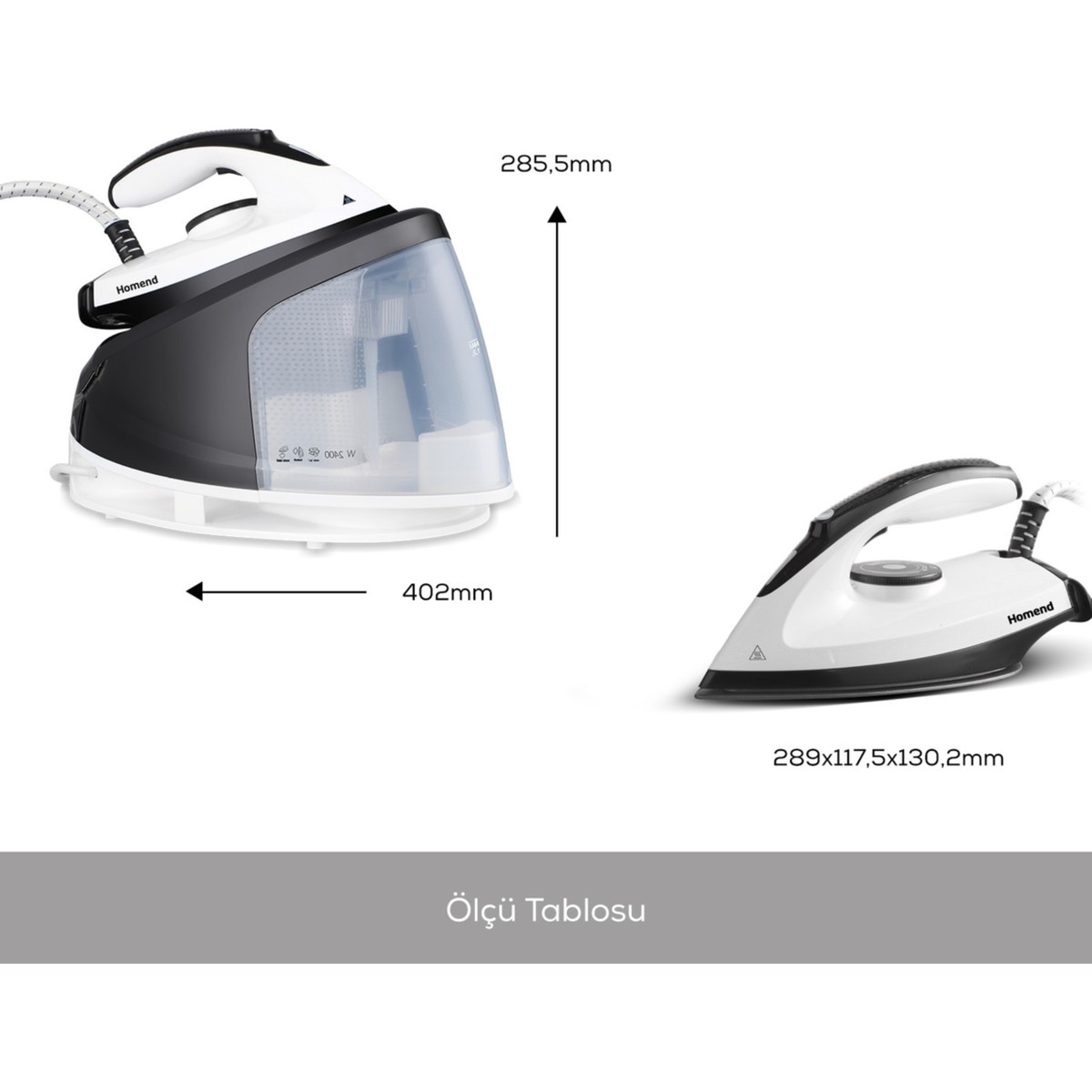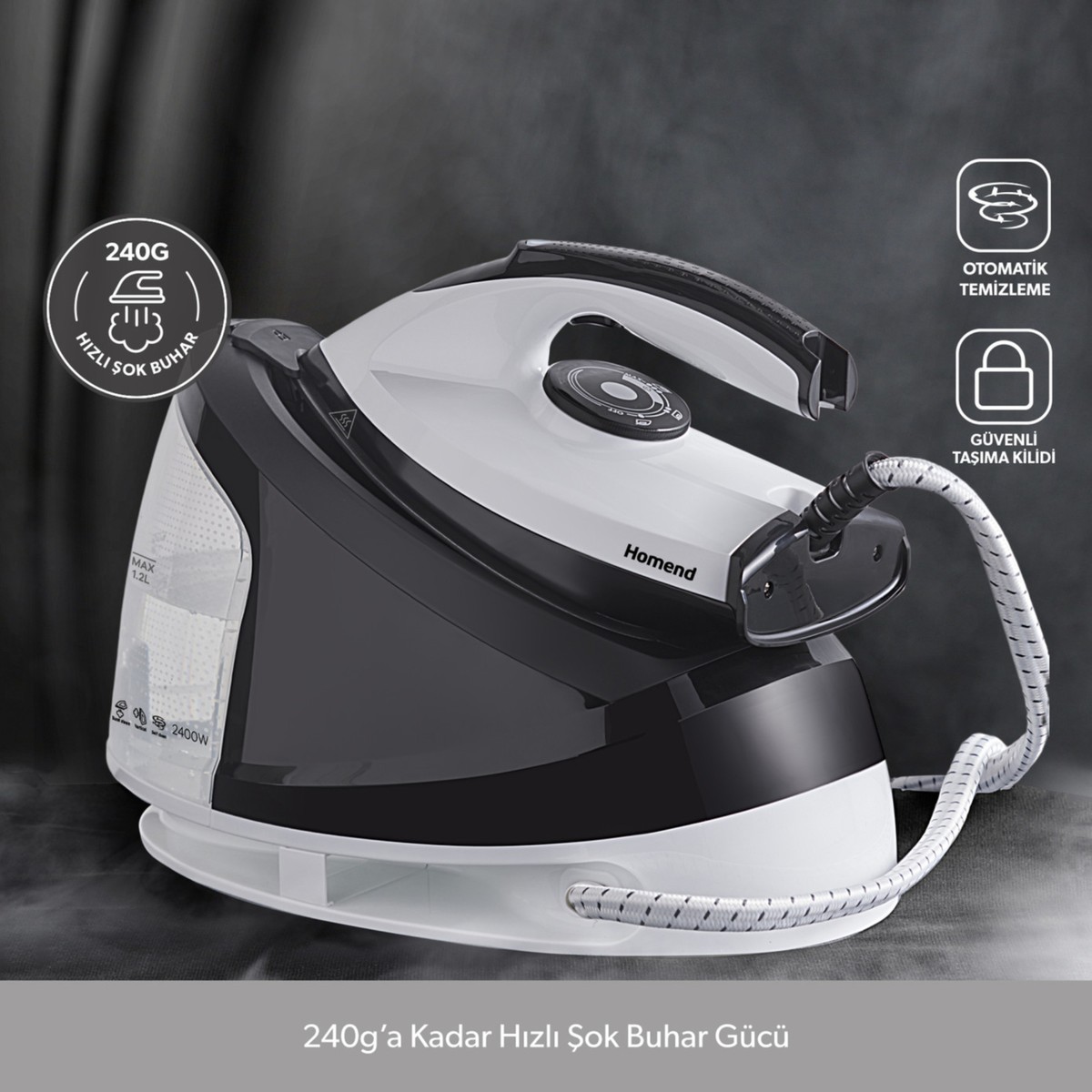 Homend Steamwork 1167H Buhar Kazanlı Ütü – Siyah / Beyaz – 2400 Watt