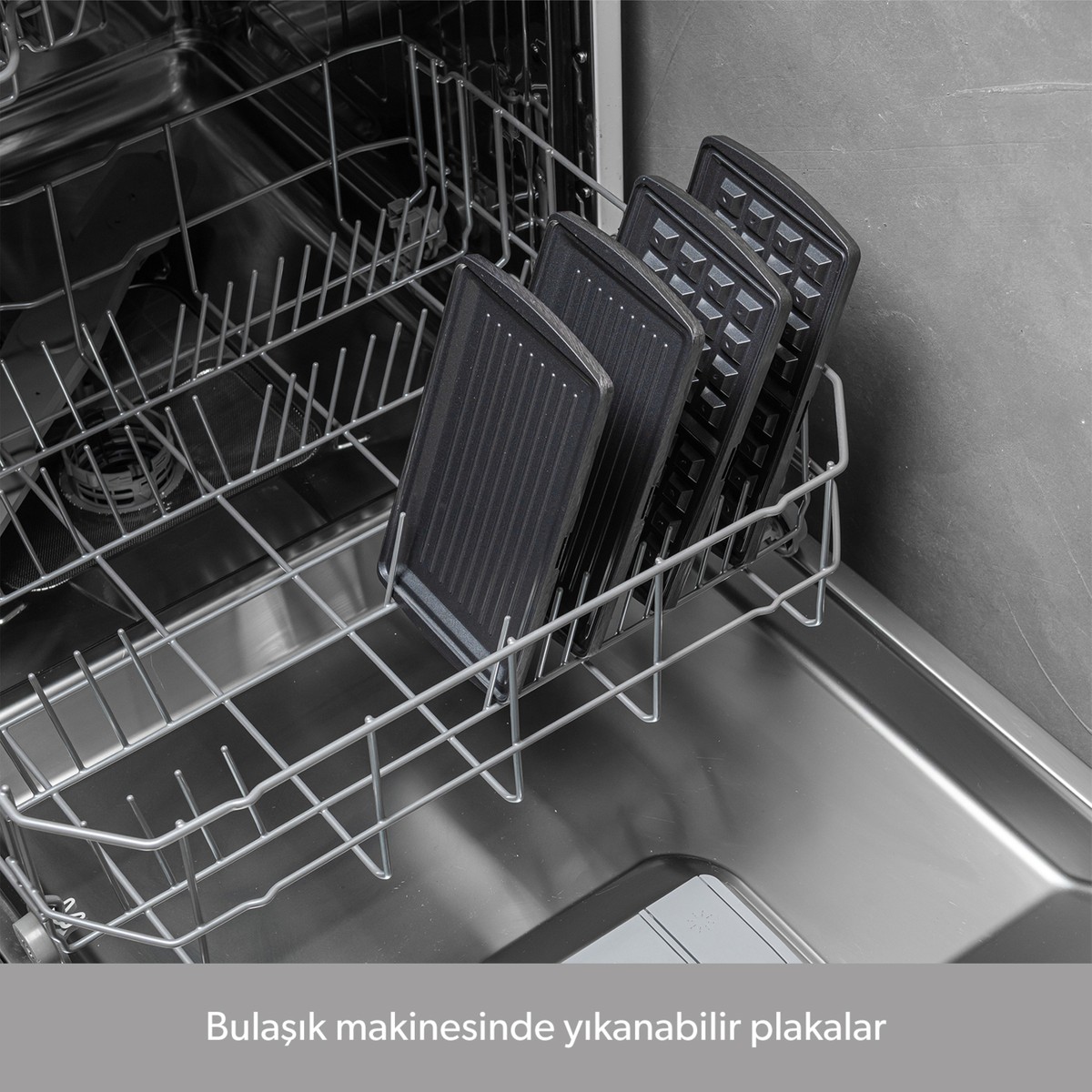 Waffle ile beraber ızgara ve tost yapma imkanı da sunar.