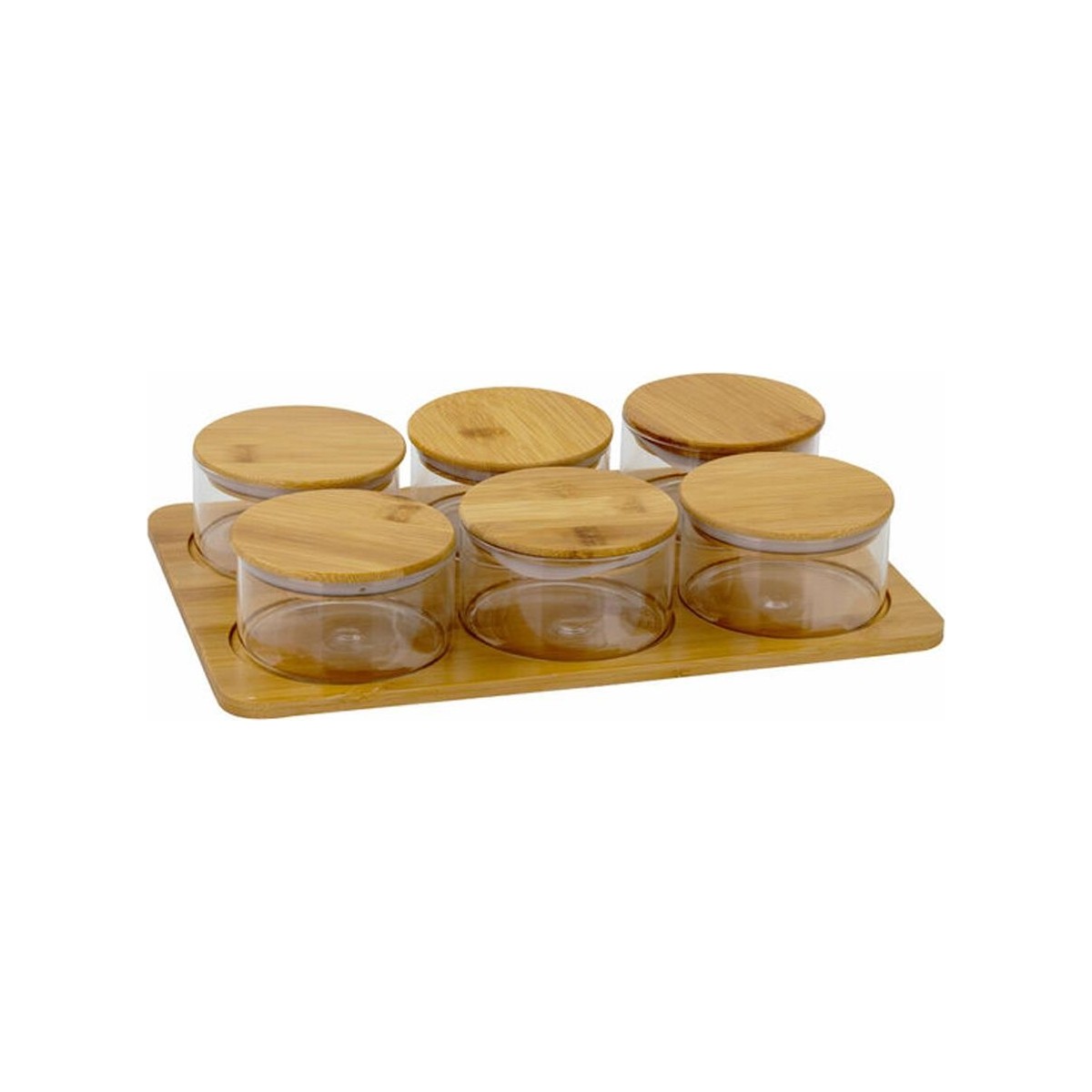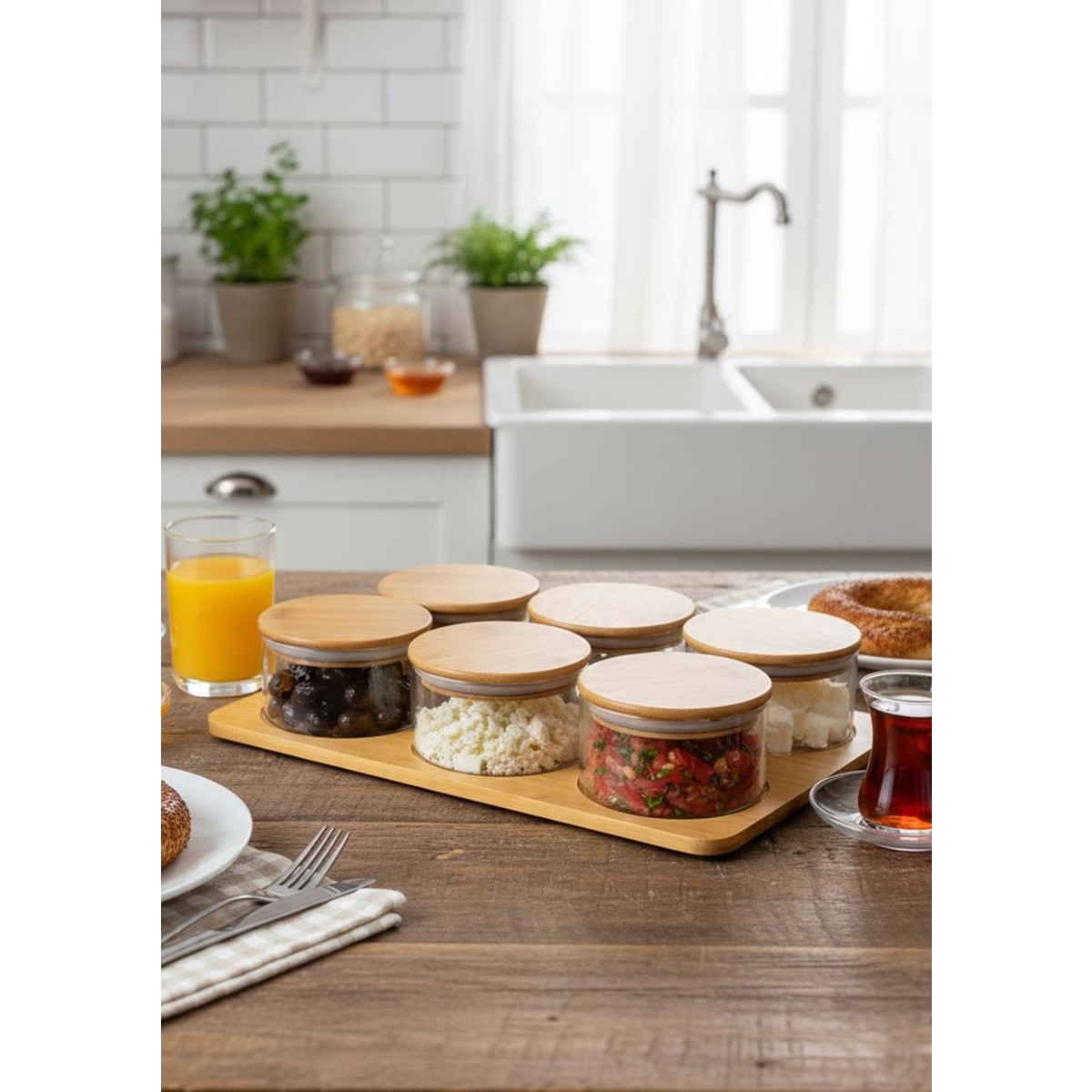 Cam Kahvaltı Takımı -Bambu Yuvarlak Kahvaltılık 13 Parça