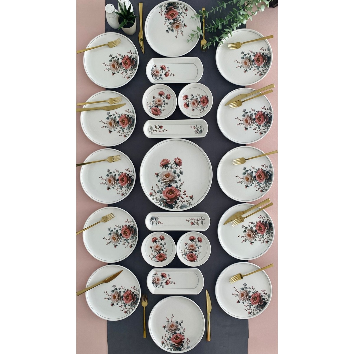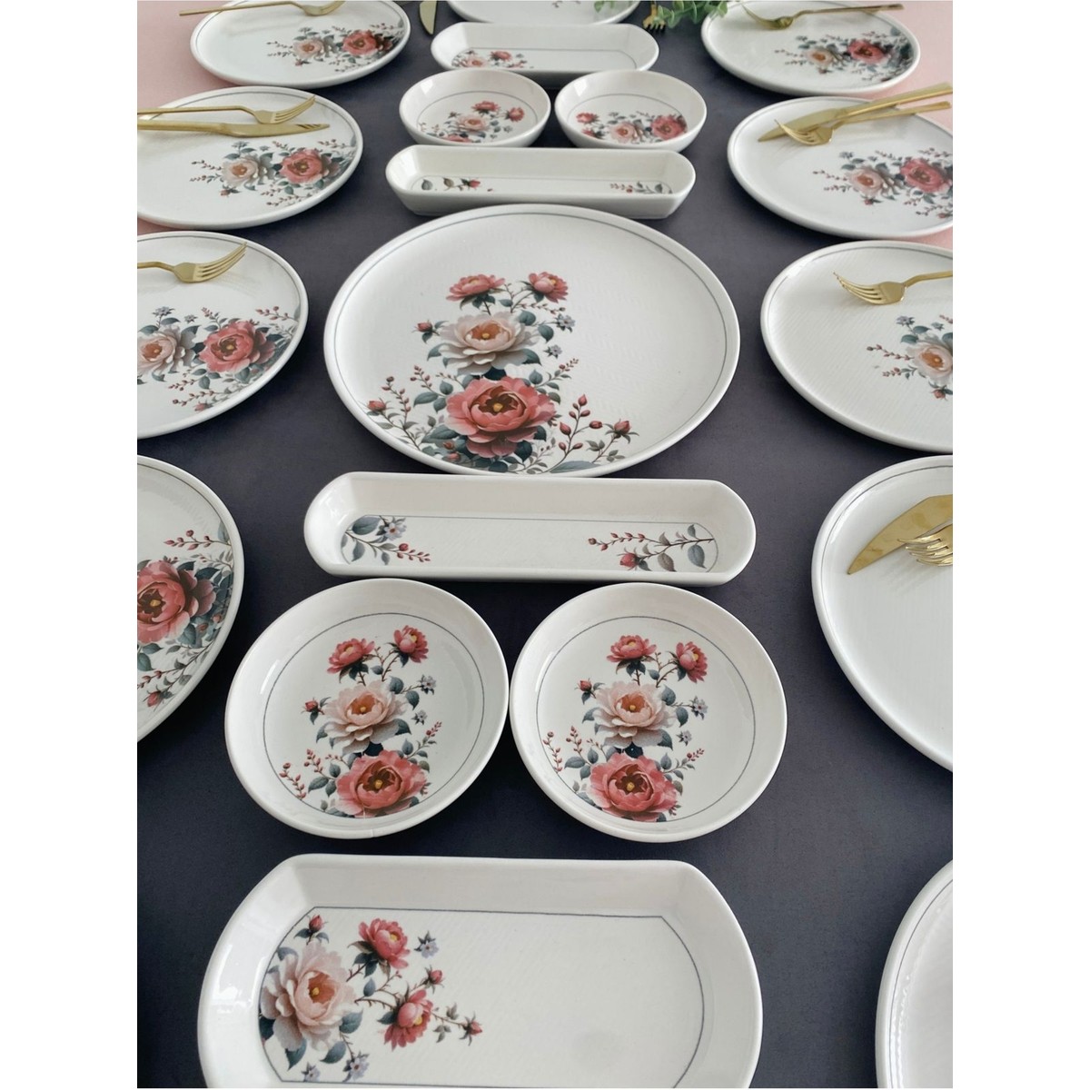 – 12 kişilik geniş kapasite, aile ve arkadaşlarınızla keyifli kahvaltılı toplantılar için ideal.; – Yuvarlak tasarımı ile modern ve şık bir görünüm sunar, sofranızda estetik bir dokunuş sağlar.; – Çiçek desenleriyle süslenmiş bu kahvaltı takımı, masanıza doğal bir güzellik katar.; – Mikrodalga kullanımına uygun yapısı sayesinde ısıyı eşit şekilde dağıtarak pratiklik kazandırır.; – Yüksek kaliteli seramik materyali ile uzun ömürlü kullanım vaat eder; dayanıklılığı ve kolay temizlenebilirliği ile dikkat çeker.