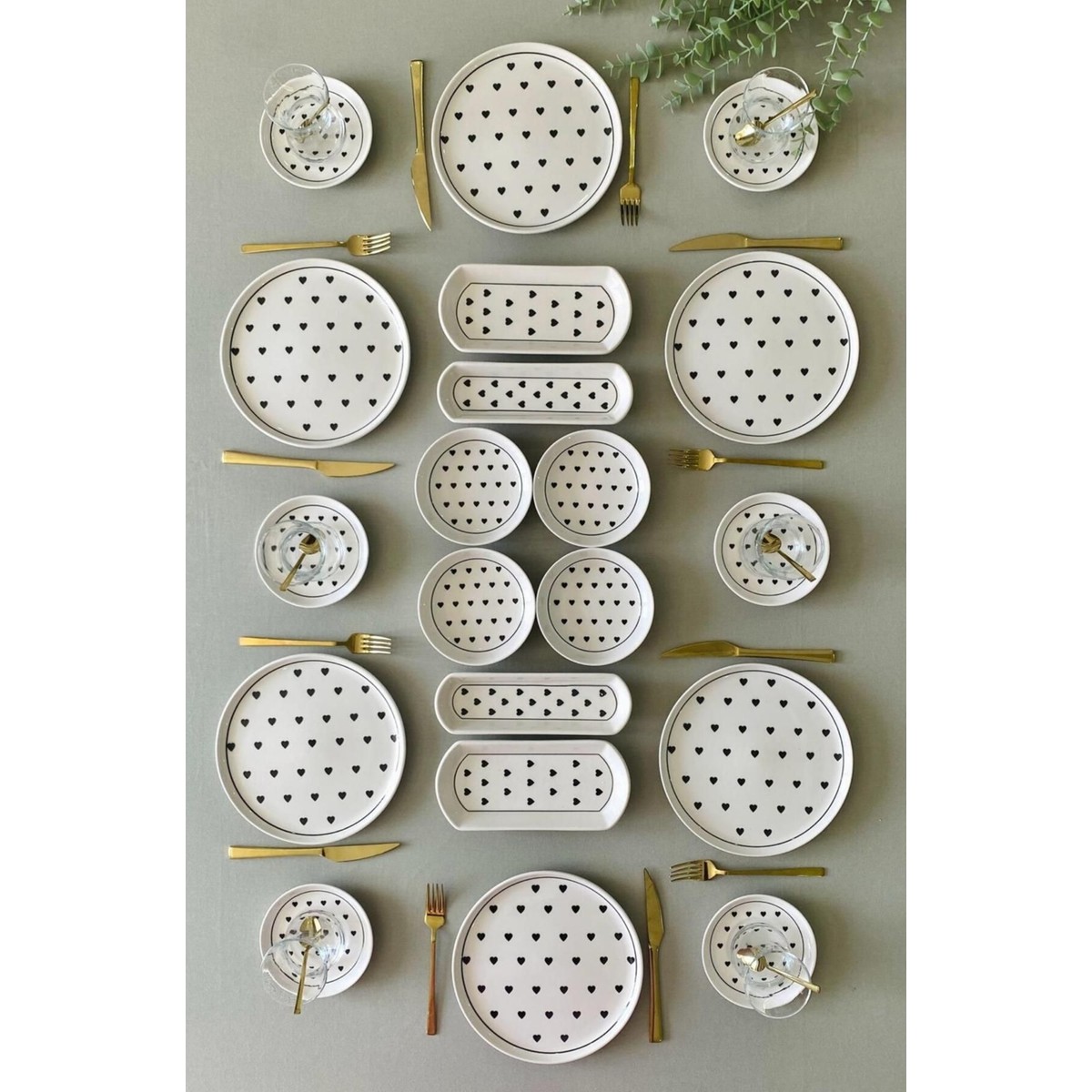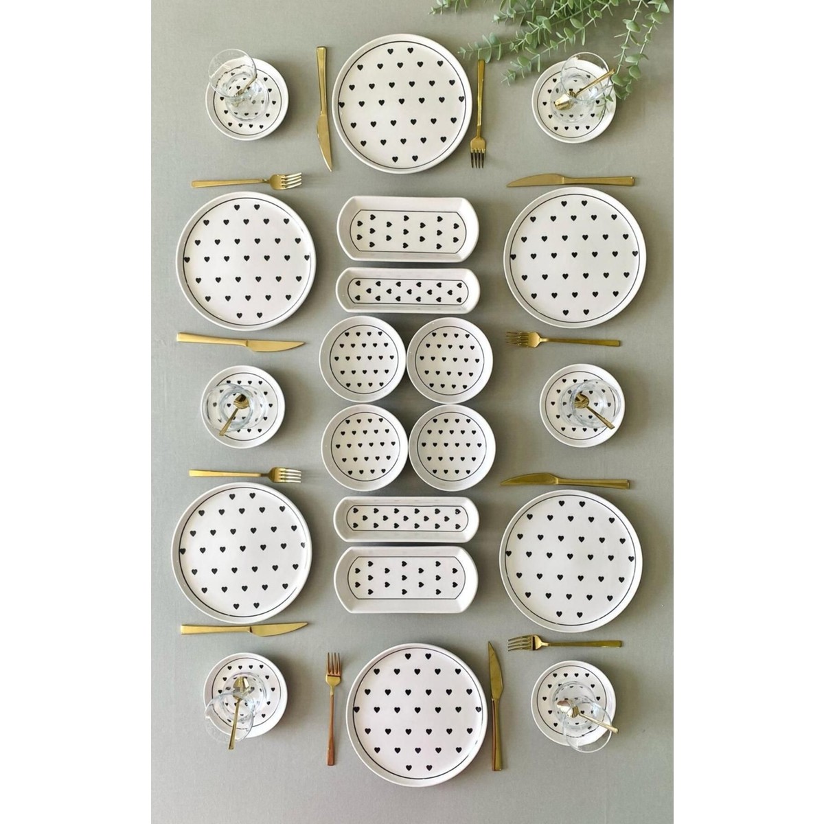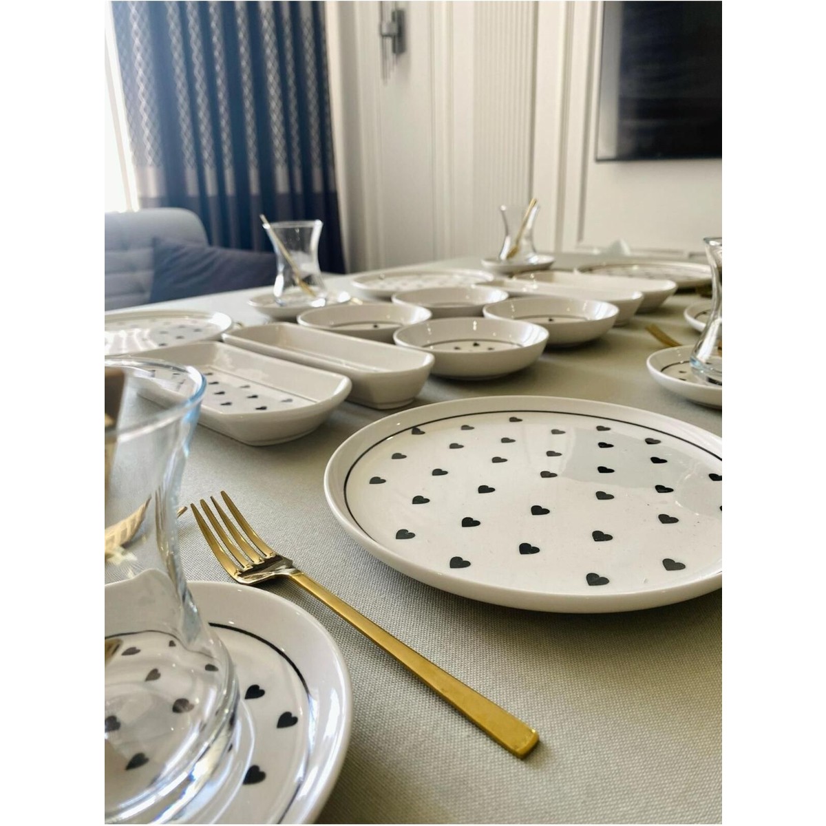 Hooly Siyah Kalp Desenli 6 Kişilik 20 Parça Kahvaltı Takımı