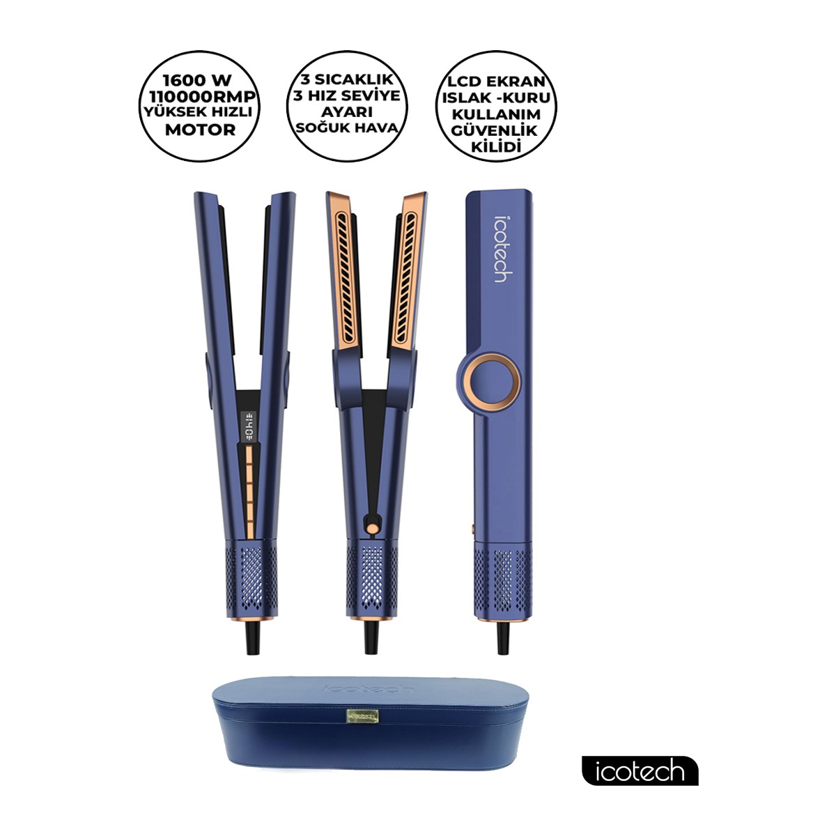 Icotech HS50 Pro Mavi Airflow Saç Düzleştirici Saç Şekillendirici Saç Maşası