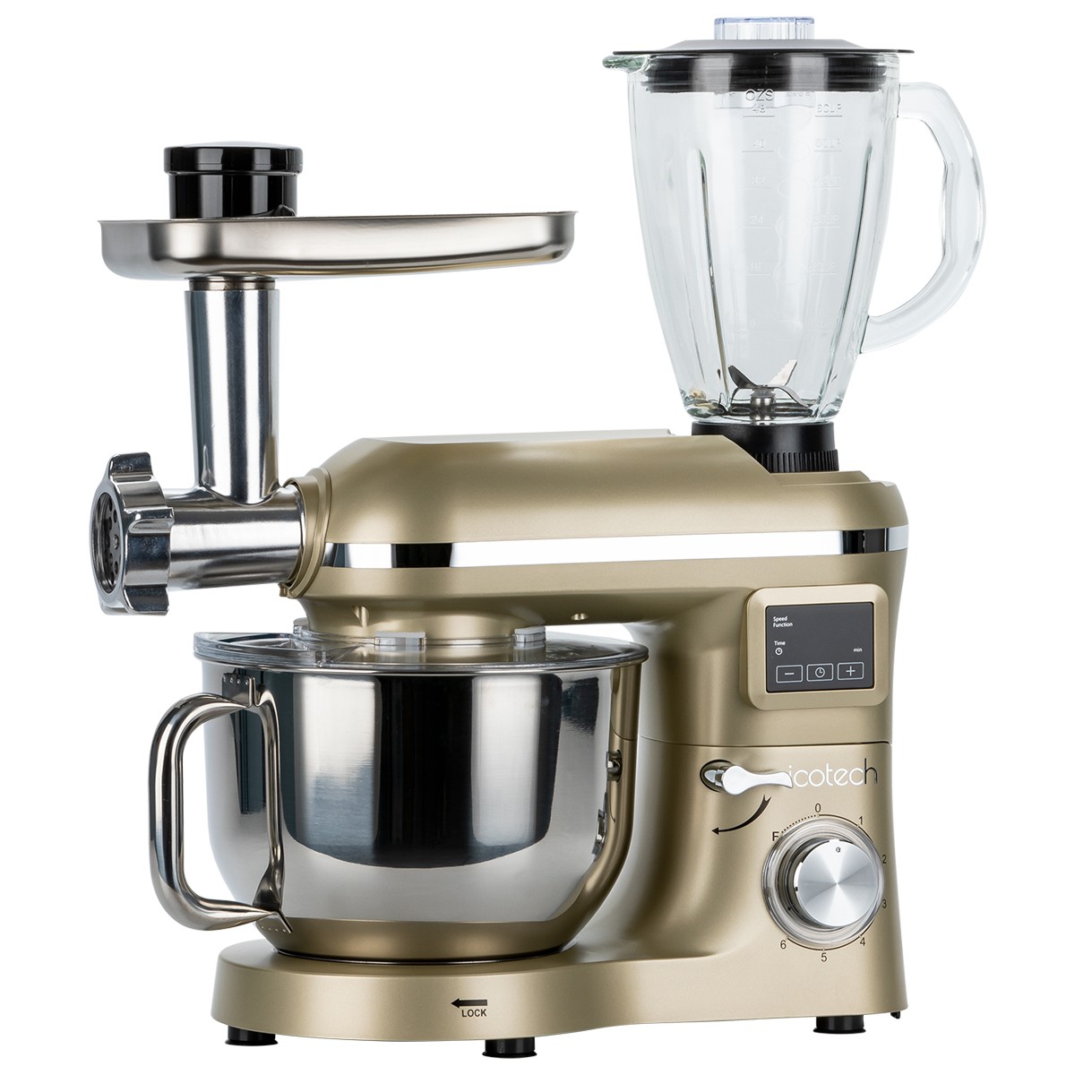 Icotech SM50 Gold LED Ekranlı Hamur Mayalama Kıyma Çekme Blender 2000W 6,5 Litre Stand Mikser Mutfak Şefi Hamur Yoğurma Makinesi