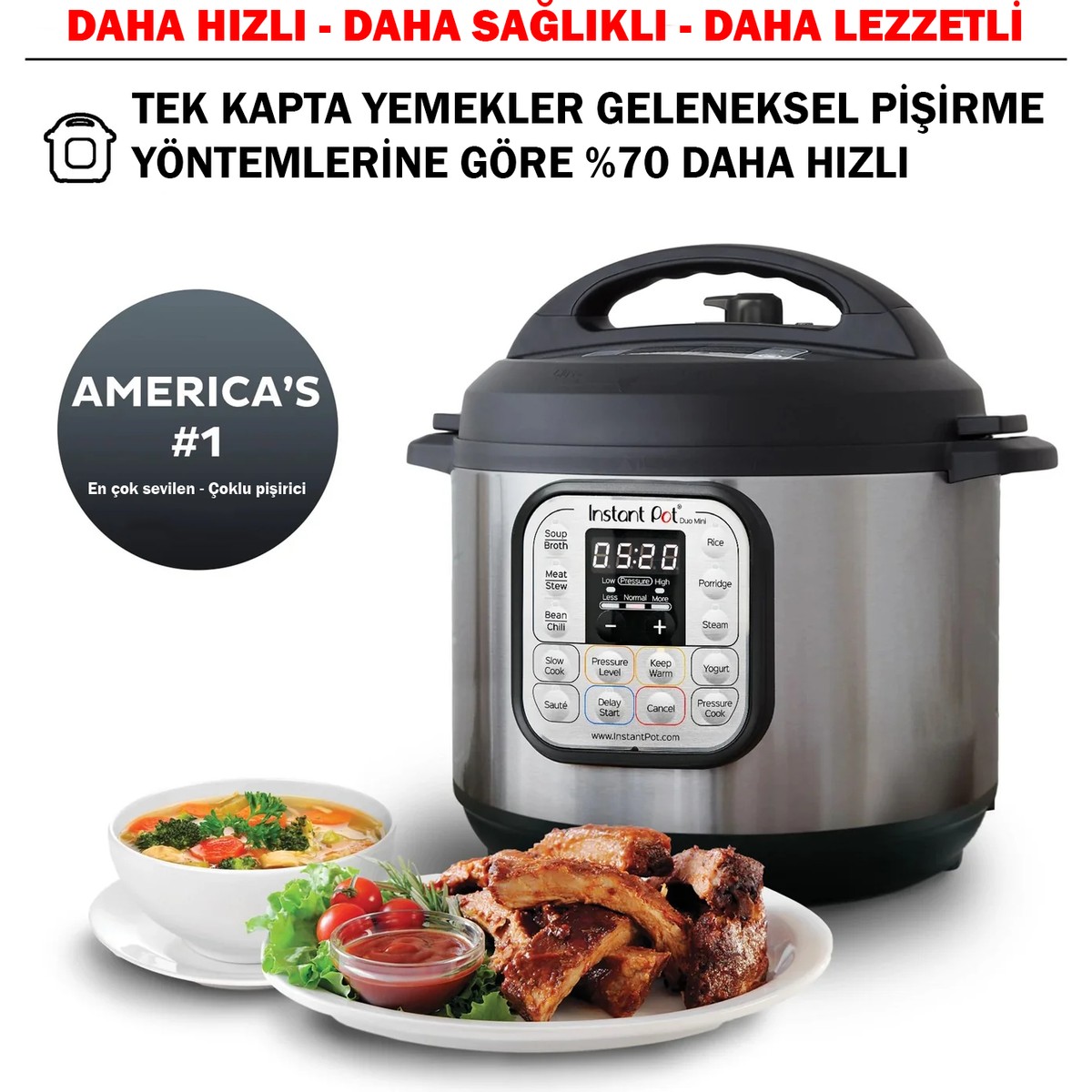 Instant Pot Duo Mini 2.85 Litre Paslanmaz Çelik İç Tencereli 7’si 1 Arada Yavaş/Pilav/Buharlı Pişirici, Yoğurt Makinası, Isıtıcı ve Sterilizatör Özellikli Elektrikli Düdüklü Tencere