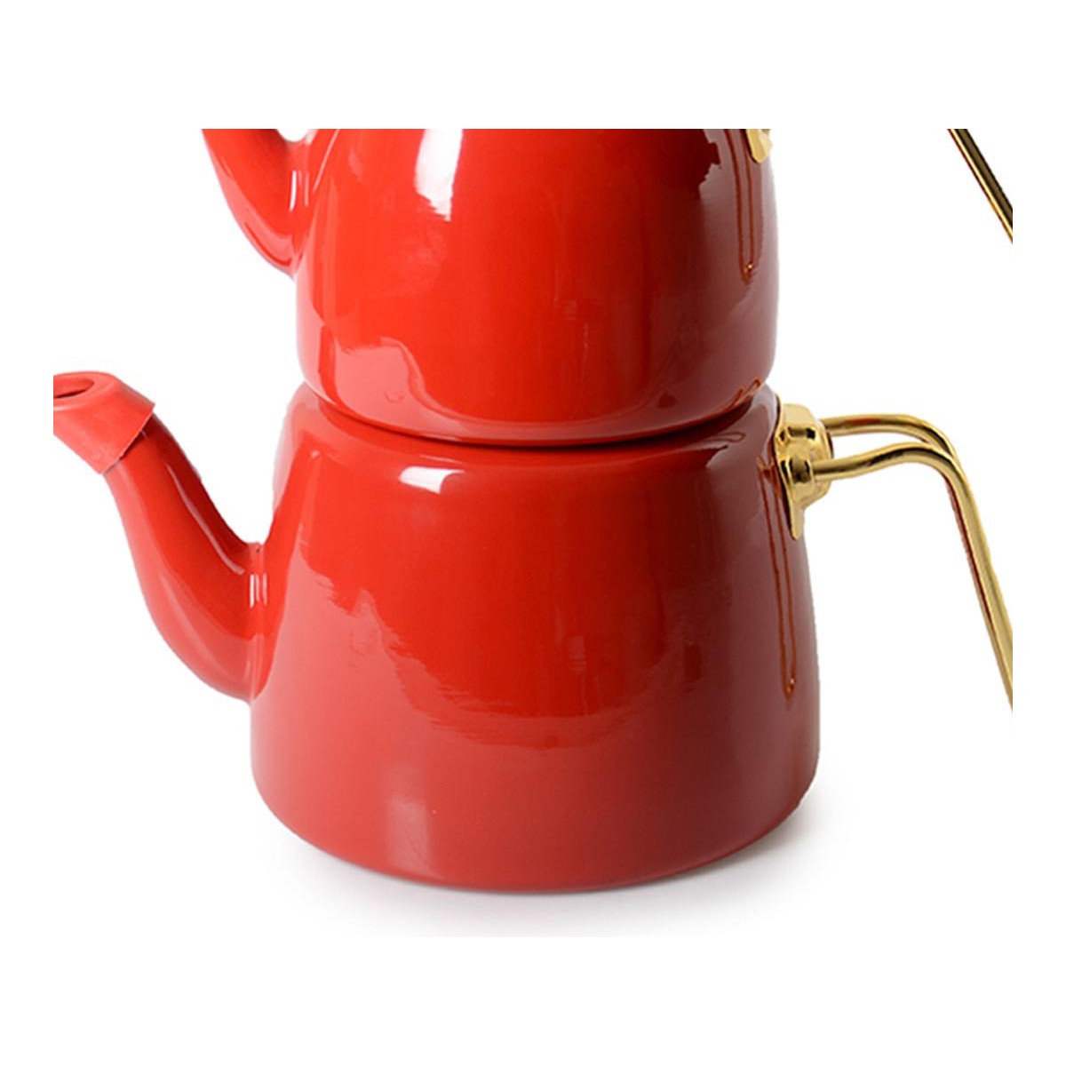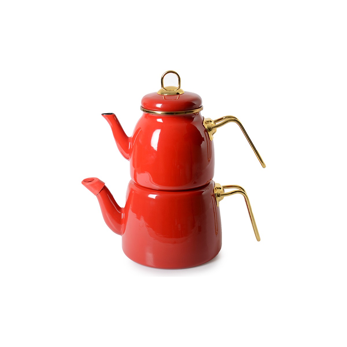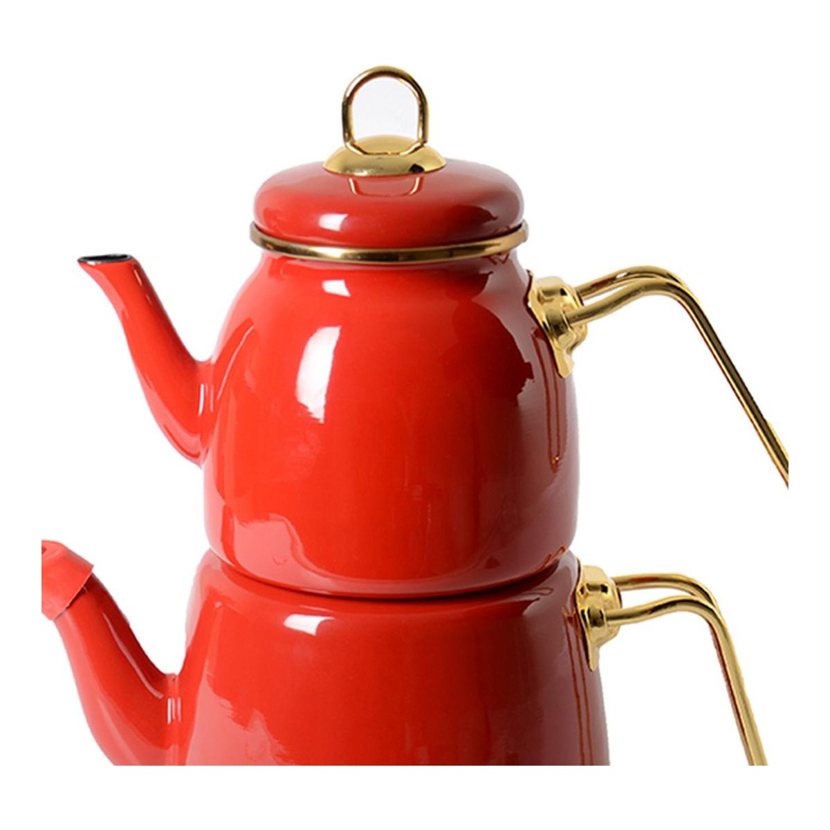 İpek Emaye Çaydanlık – Kırmızı / Altın