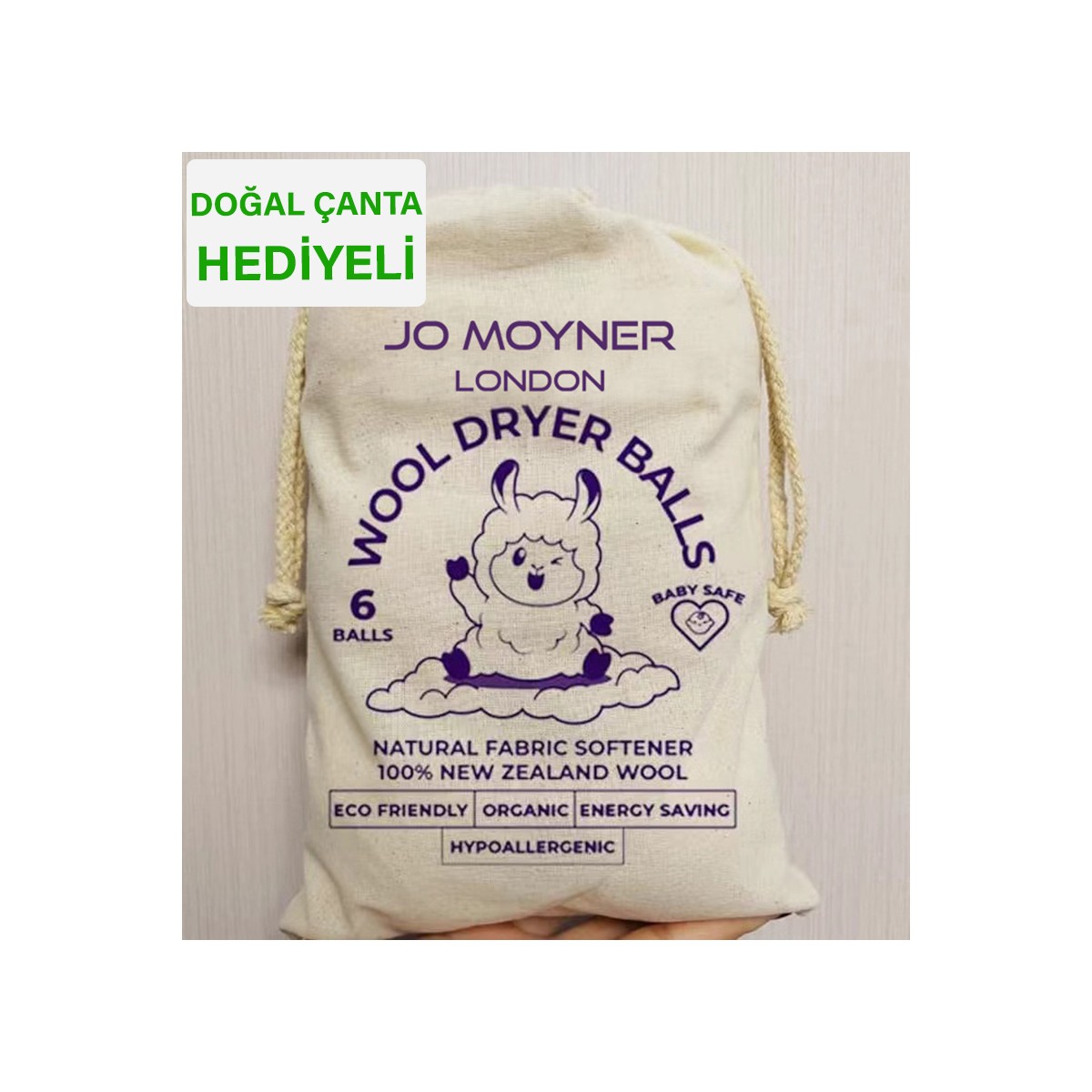 *HEDİYE SAKLAMA KESESİ: Jo Moyner Yün Kurutma Toplarınızı saklamak için pamuktan yapılmış bir saklama kesesi hediye ediyoruz.