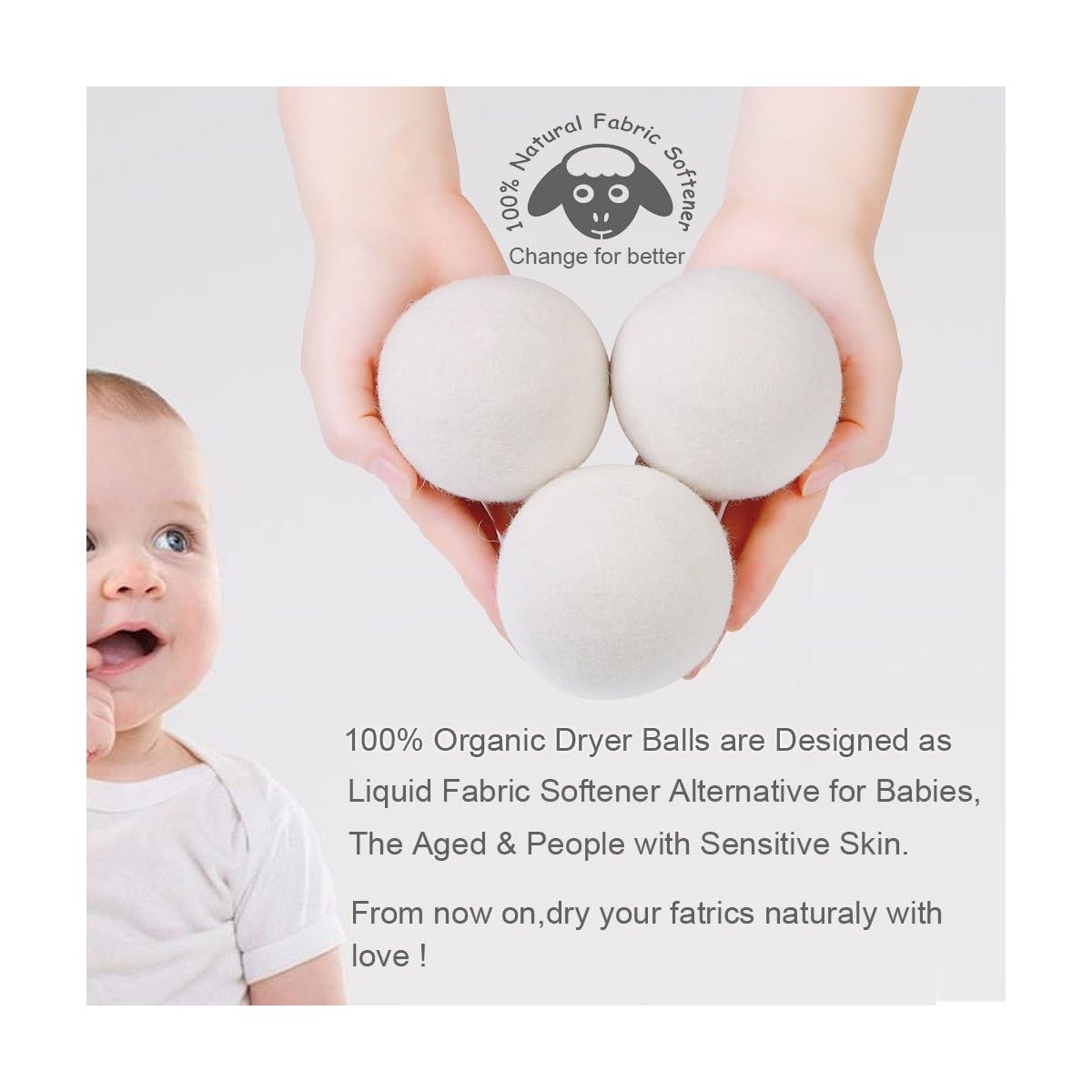 Çevre dostu, yeniden kullanılabilir ve enerji tasarrufu sağlayan yeni zelanda toplarımız ile  %25’e varan enerji tasarrufunun keyfini çıkarırken, %45 daha hızlı kurutma süresinin ve ütüleme kolaylığının tadını çıkarın. Yün kurutma toplarımız, 22 mikron yumuşak dokulu Yeni Zelanda merinos yününden el yapımı olarak üretilmiştir ve 1000 kullanıma kadar dayanıklıdır. Sadece çamaşırlarınızı hızla kurutmakla kalmaz, aynı zamanda çevreye katkıda bulunurken elektrik faturalarınızı azaltır, zamandan tasarruf sağlar.