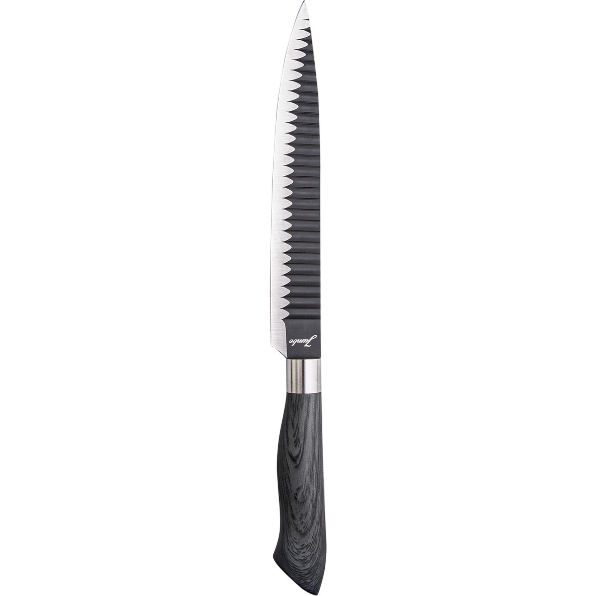 • Şef bıçağı, et bıçağı ve ekmek bıçağı 1,8 mm kalınlığında çok amaçlı bıçak ve soyma bıçağı 1,2 mm kalınlığa sahiptir. Keserken yapışmayı önleyen kabartmalı gövde çeliktir. Non-Stick kaplamalı özel bıçak ağzı ile kolay kesim sağlar. Ara bağlantı yüzüğü çeliktir. Ahşap görünümlü silikon sapa sahiptir.