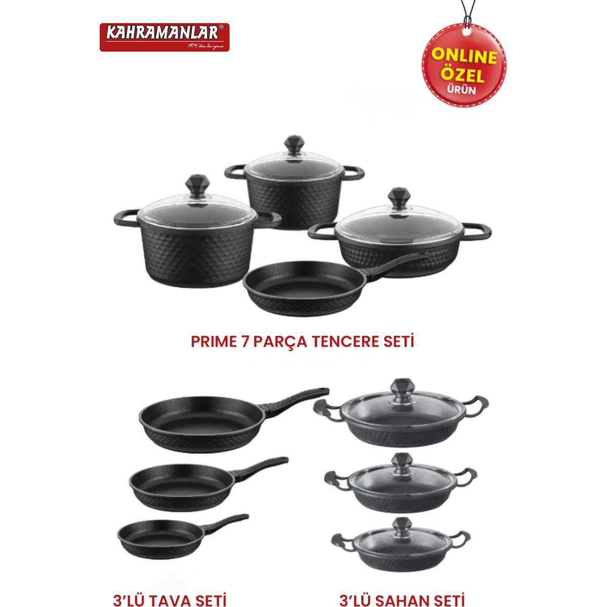 Set İçeriği: 7 Parça Prime Tencere Seti | 3’lü Tava Seti | 3’lü Sahan Seti