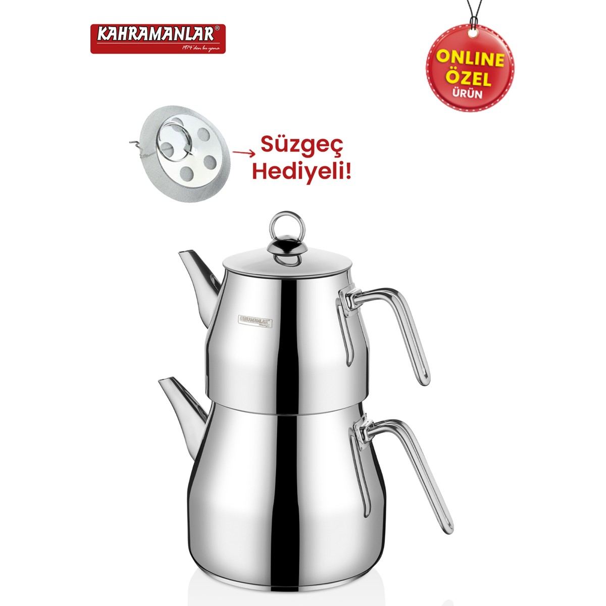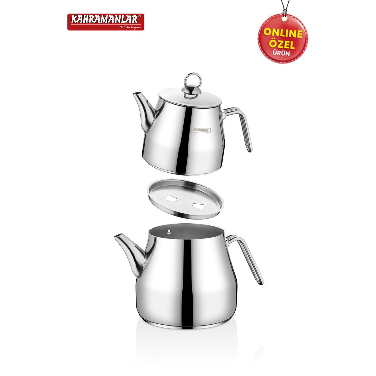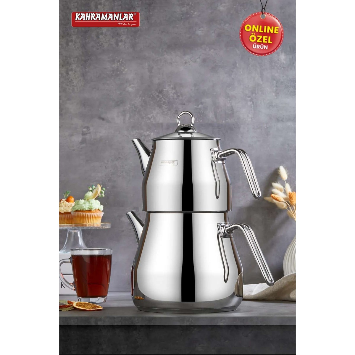 Kahramanlar Piramit Platin XXL 7 L Çaydanlık Seti 18/10 Paslanmaz Çelik Yüksek Isı İletimli