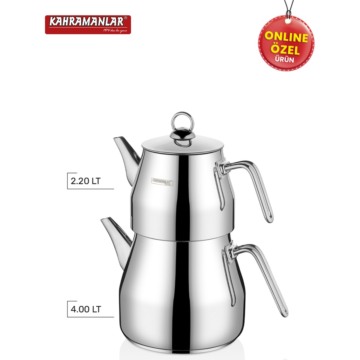 Kahramanlar Piramit Platin Çaydanlık Takımı XXL 7 LTşık tasarımı ve yüksek kaliteli malzemesi ile çay keyfinizi bir üst seviyeye taşıyor. 2.5 L çaydanlık ve 4.5 L demlik hacmi ile kalabalık misafirlerinizi ağırlamak için ideal bir seçim!