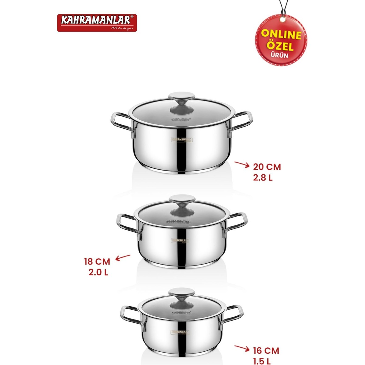 Kahramanlar Yağmur Indüksiyon Tabanlı 3’lü Tencere Seti