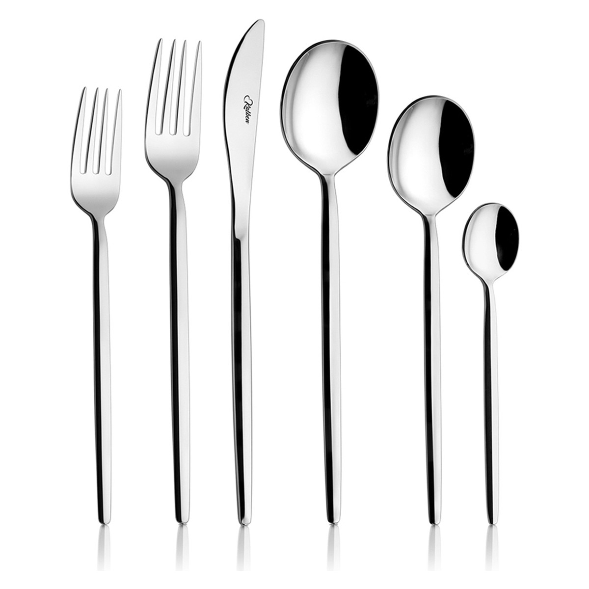 Ürünümüz 18/10 CR/NI paslanmaz çelikten üretilmiş olup 6 kişiliktir. Bulaşık makinesinde hassas programda güvenle yıkanabilir. Yıkama sonrasında kuru bir bez ile kurulanması tavsiye edilir. Ürünümüz tamamen yerli üretimdir ve 50 yıl fabrikamız garantisi altındadır. 6 Ad. Yemek Kaşık 5 mm 6 Ad. Yemek Çatal 5 mm 6 Ad. Yemek Bıçak 6 mm 6 Ad. Tatlı Çatal 4 mm 6 Ad. Tatlı Kaşık 4 mm 6 Ad. Çay Kaşık 3,5 mm Kutu Boyutu: 42 cm x 24 cm x 5,5 cm Kutu Ağırlığı: 2,24 kg