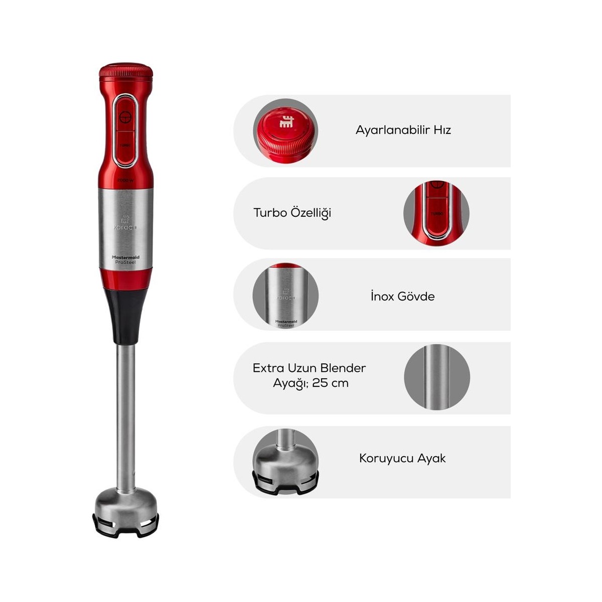 - Çırpıcı aparatı ve 25cm extra uzun blender ayağı