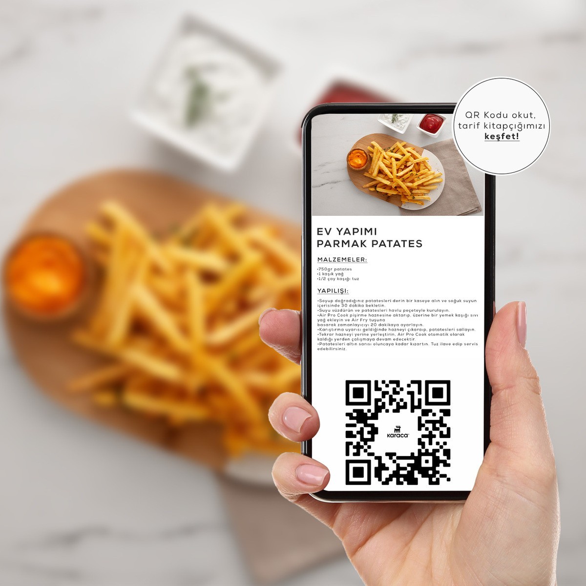 Karaca Air Pro Cook ile tezgahta çok yer kaplamamasına rağmen sunduğu 4 litre geniş hacimle herkese yetecek yemekler hazırlayabilirsiniz.