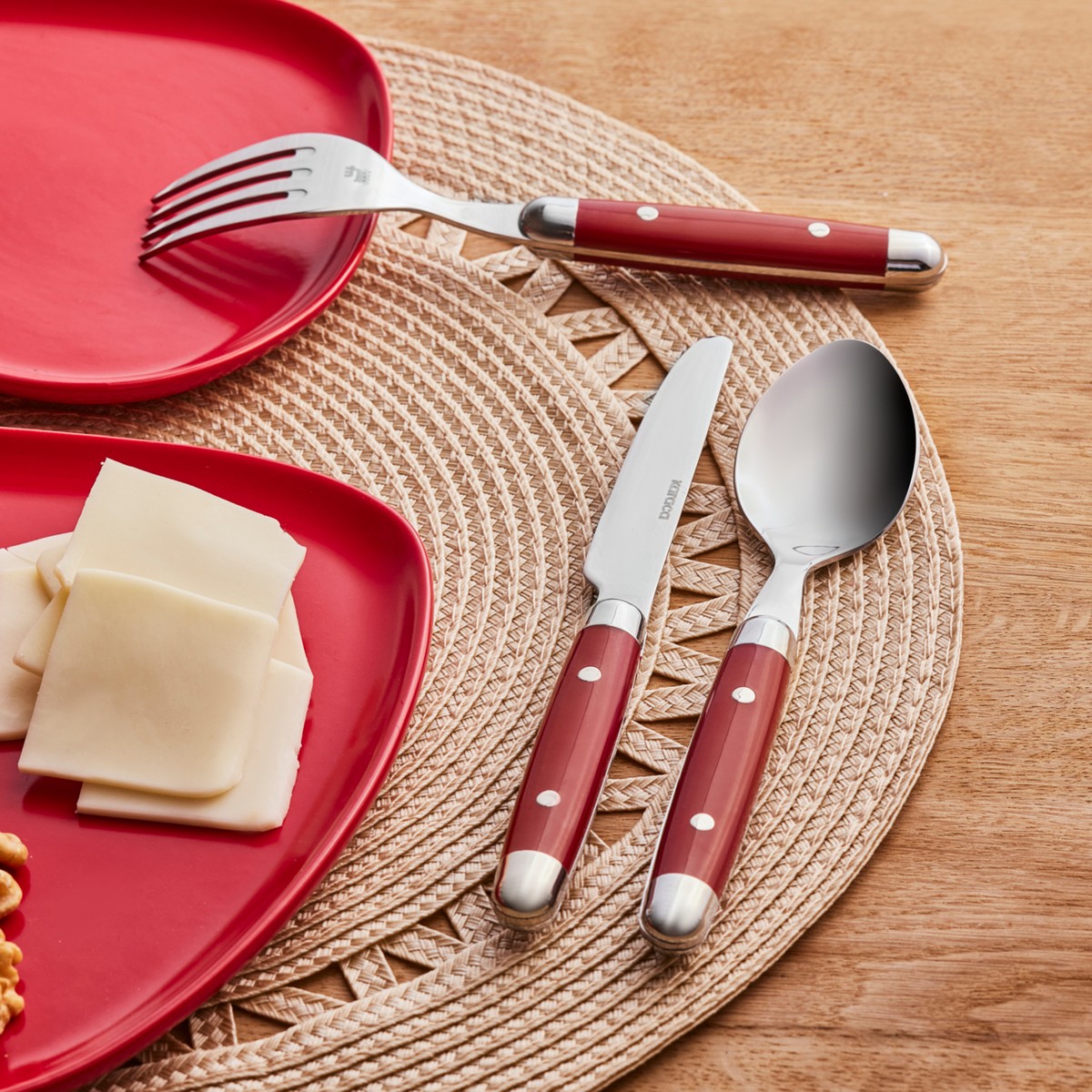 Karaca Alina 18 Parça 6 Kişilik Tatlı Çatal Kaşık Bıçak Takımı Kırmızı