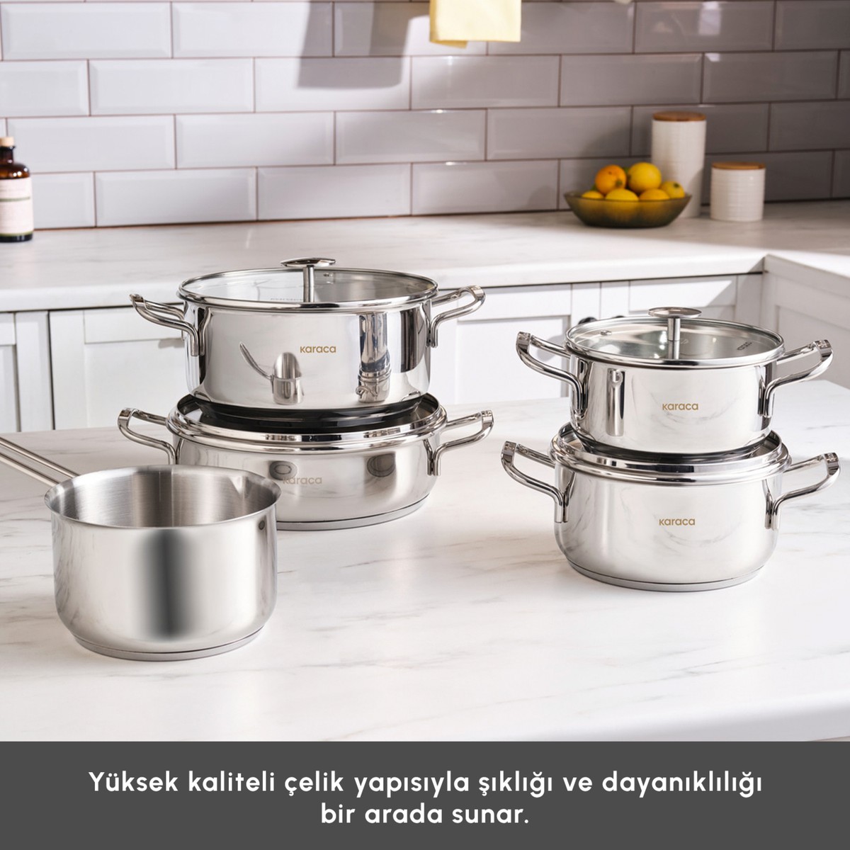 Karaca Aris İndüksiyon Tabanlı 9 Parça Çelik Tencere Seti