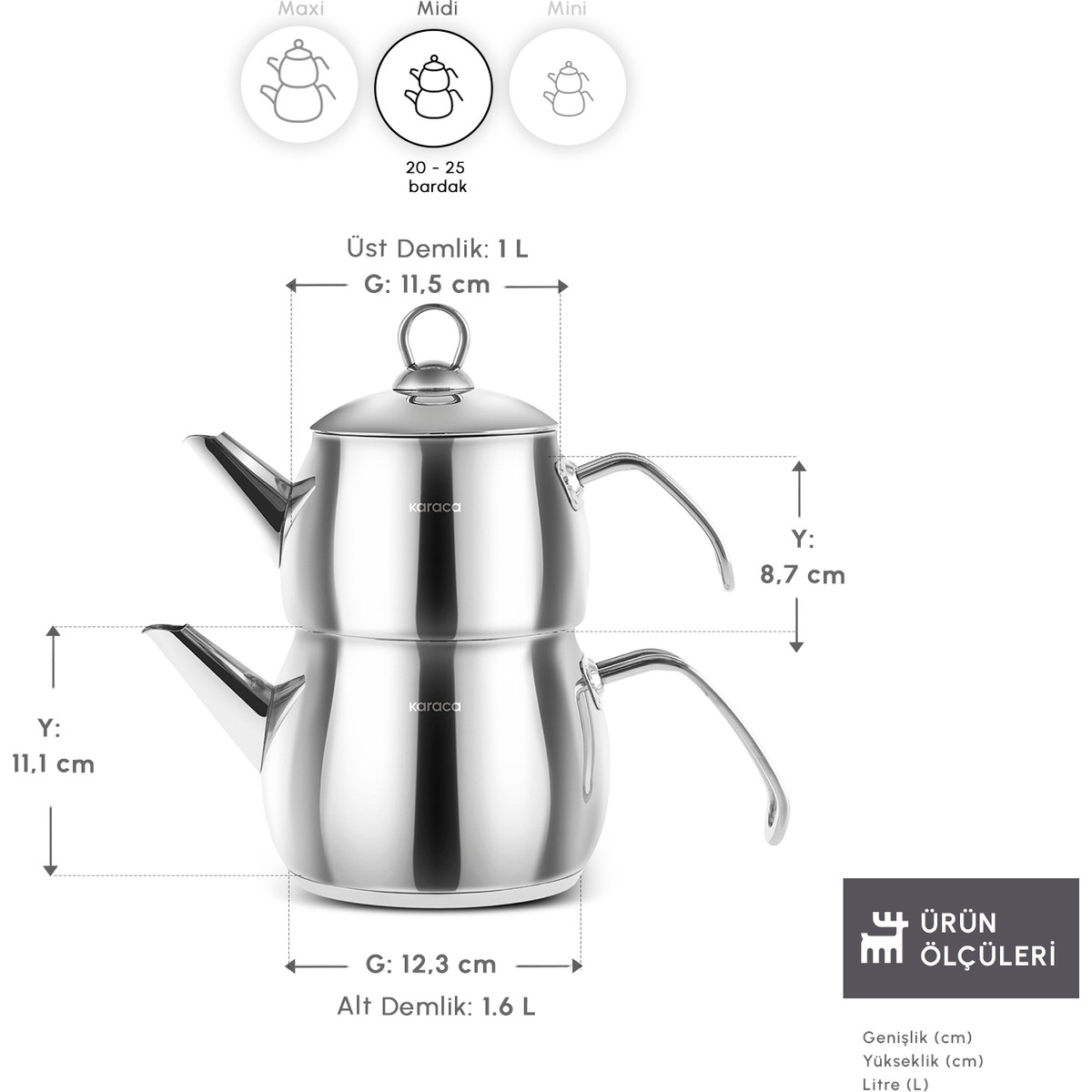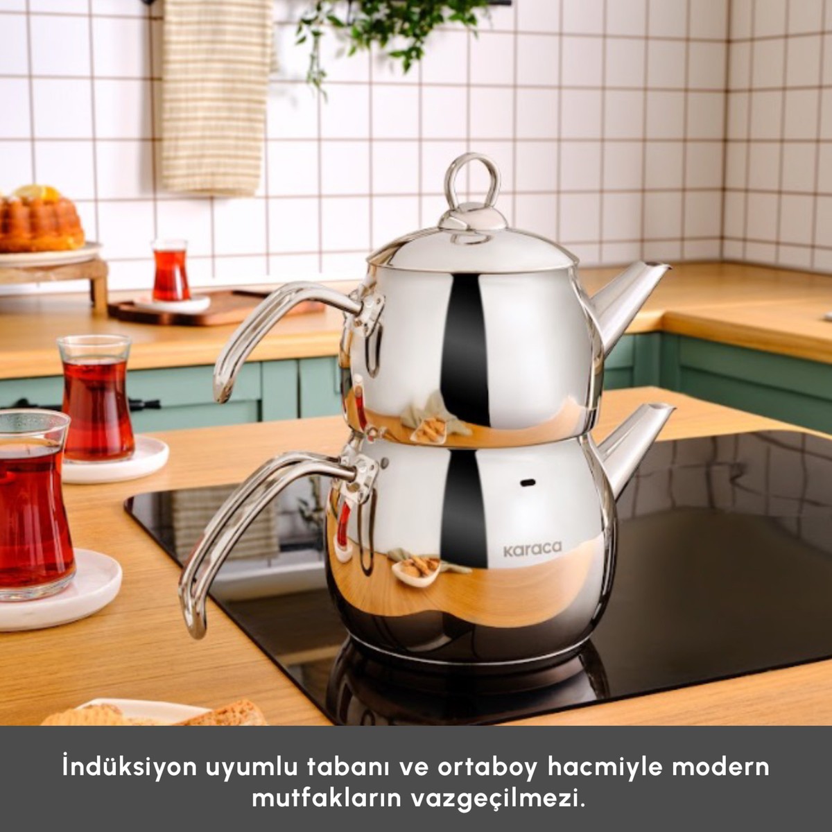 Karaca Belinay İndüksiyon Tabanlı Midi Metal Çaydanlık Takımı