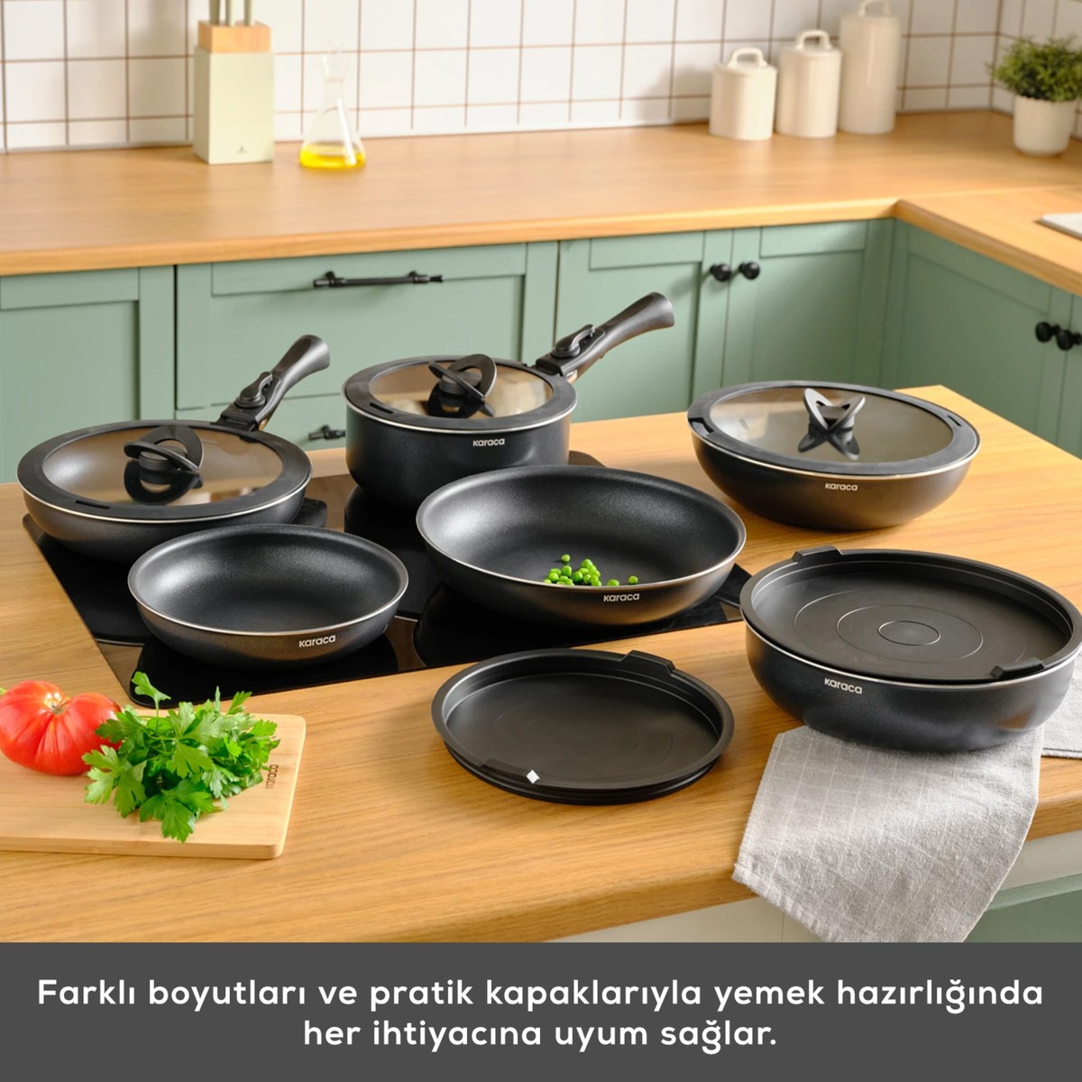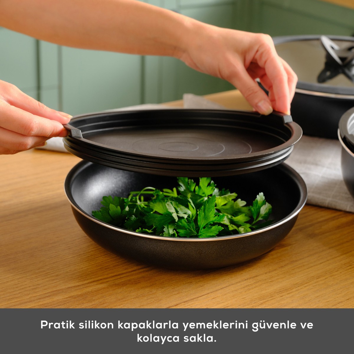 Üstün yanmaz yapışmaz yüzeyi ile et, balık, yumurta ve sebzelerinizi yağ kullanmadan sağlıklı bir şekilde pişirebilirsiniz. Üstelik cam kapakları ile pişme sürecini takip edebilirken, plastik kapaklar ile de yiyeceklerinizi buzdolabında güvenle saklayabilirsiniz.