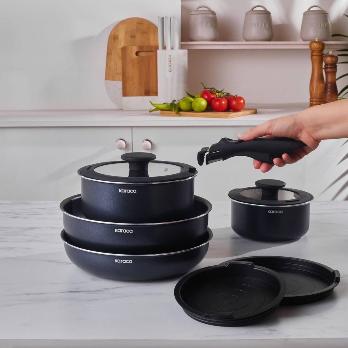 Karaca BioDiamond Smart Clip Tencere Seti, lezzetli yemekler pişirmeniz ve yemeklerinizi en iyi şekilde saklamanız için tasarlandı.
