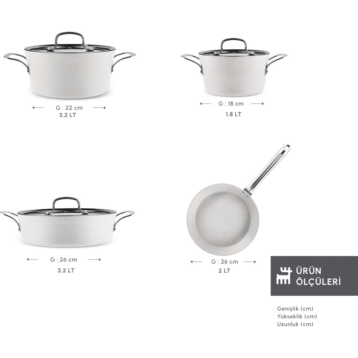 Karaca Biogranit White Stone 7 Parça Tencere Seti