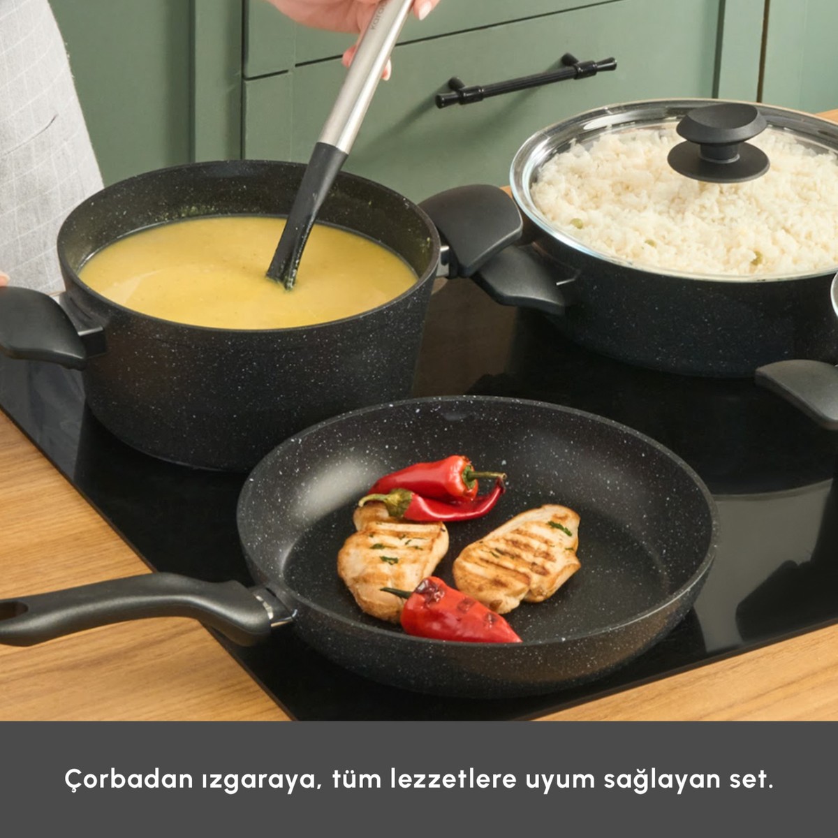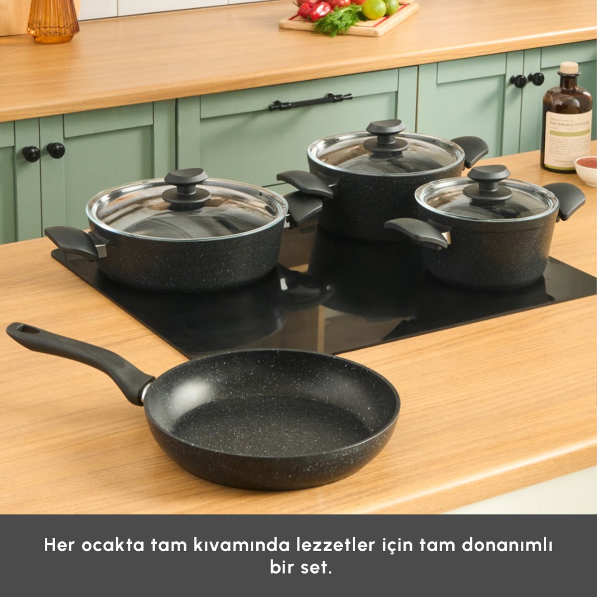 Karaca Defne Biogranit V2 7 Parça Tencere Seti Black