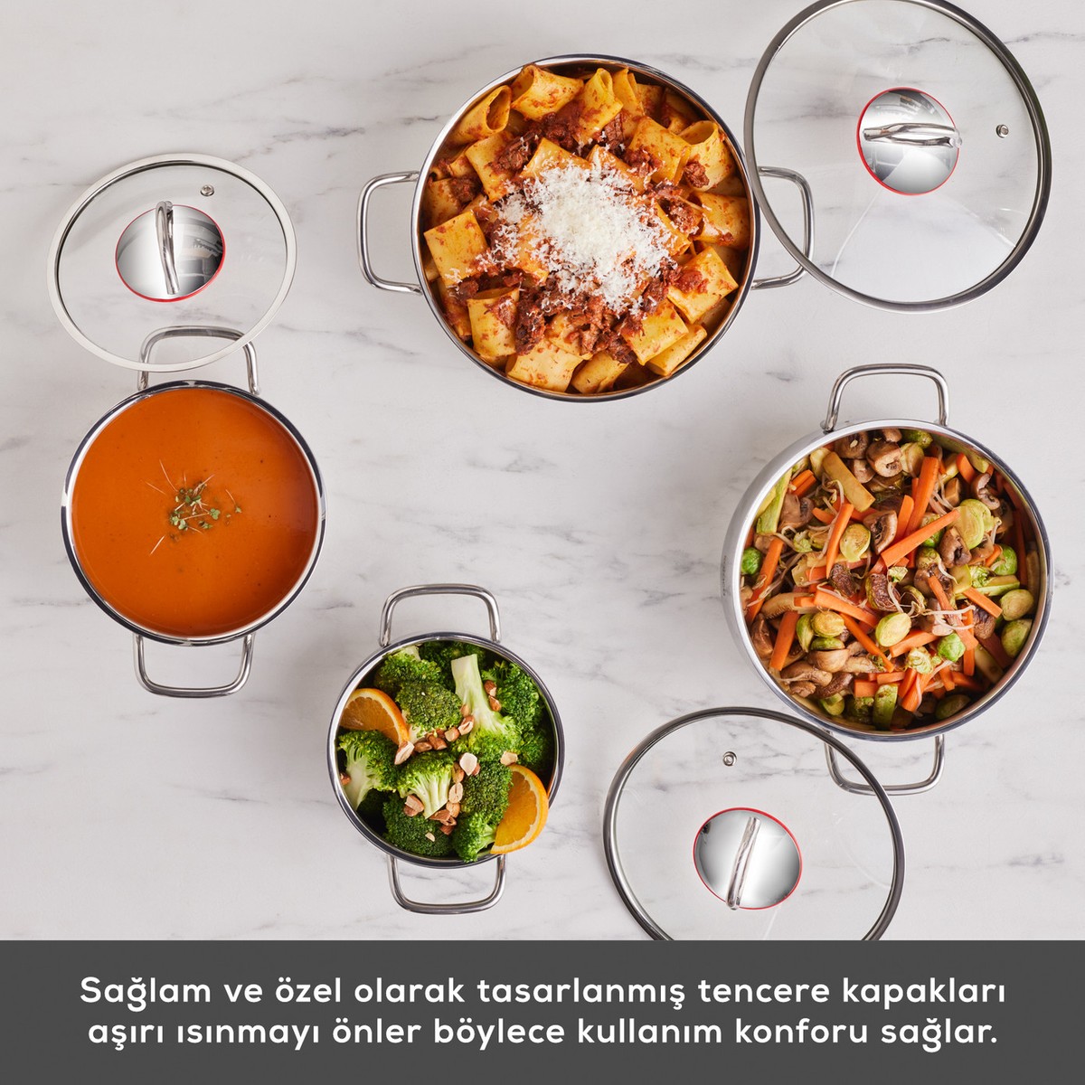 - Tencere kapakları ısıya dayanıklı olması için özel geliştirilmiştir.
