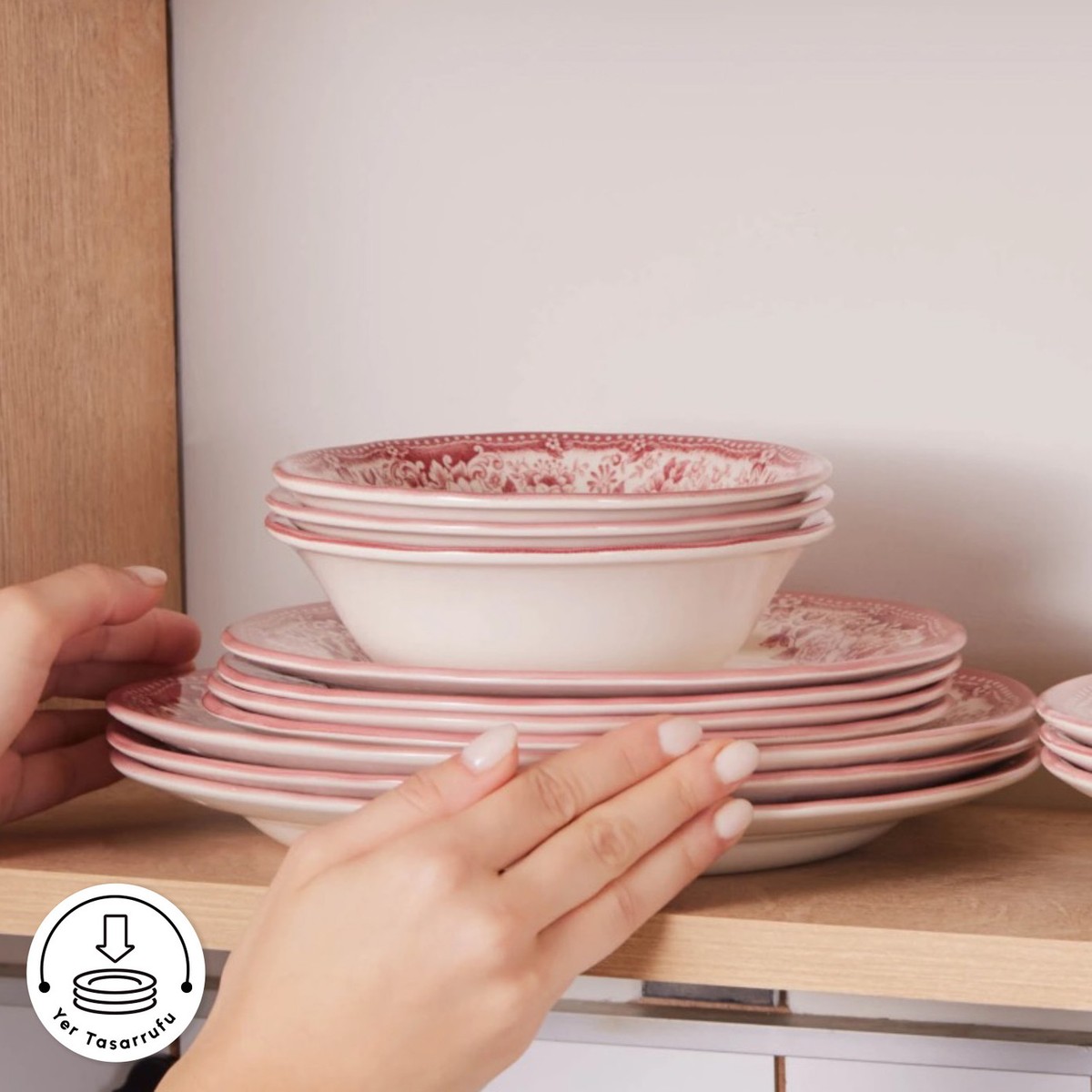 Karaca Forever Bone Diana Rose 24 Parça 6 Kişilik Yemek Takımı — sofralarınıza şık ve modern bir dokunuş kazandırırken, pratik kullanım ve yer tasarrufu avantajı sunar.
