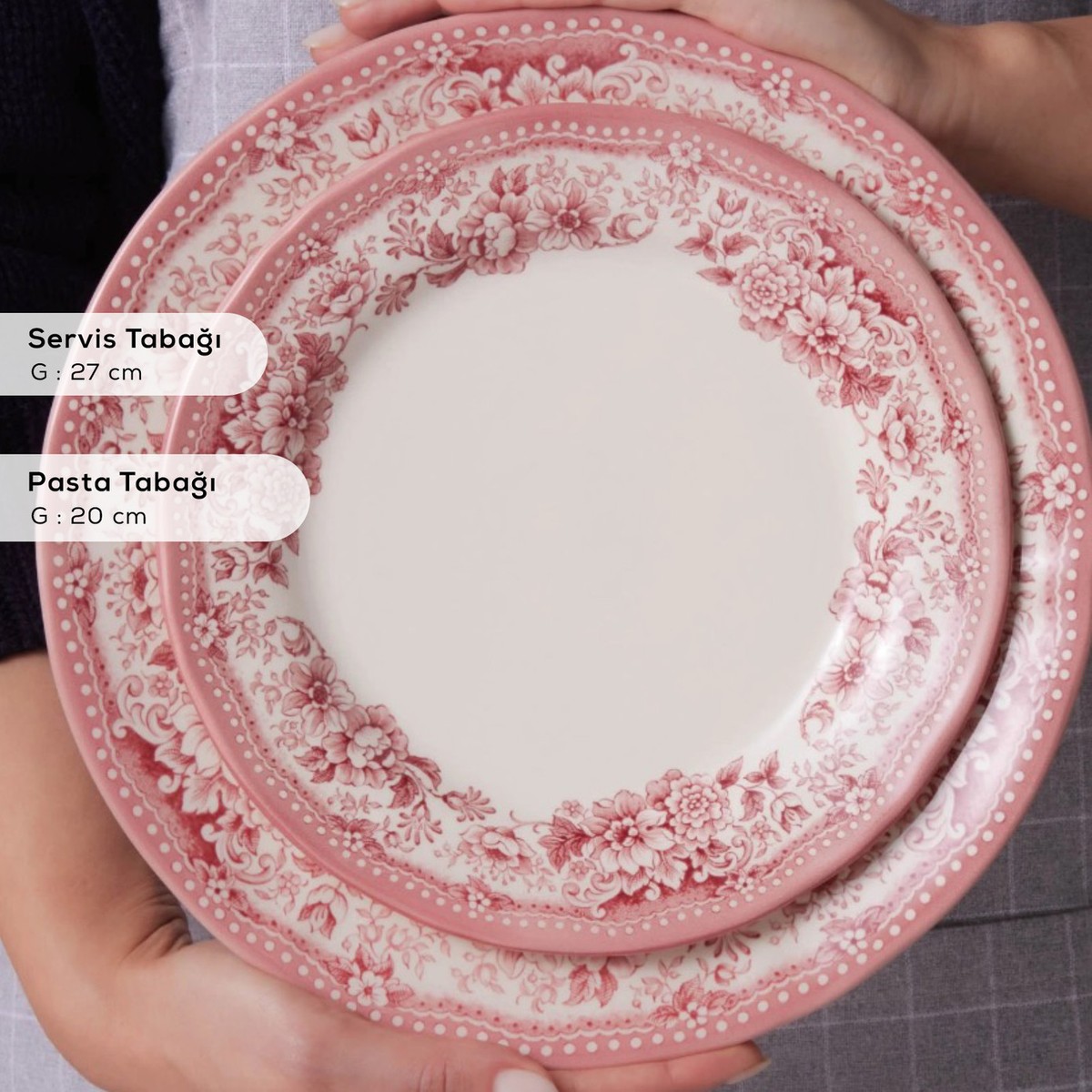 Karaca Forever Bone Diana Rose 24 Parça Porselen 6 Kişilik Pembe Yemek Takımı – Şık ve Zarif Tasarım