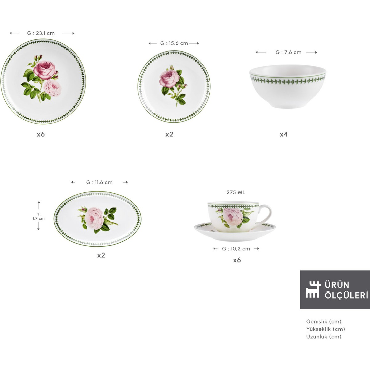Karaca Forever Bone Rosalinda 26 Parça 6 Kişilik Kahvaltı Takımı