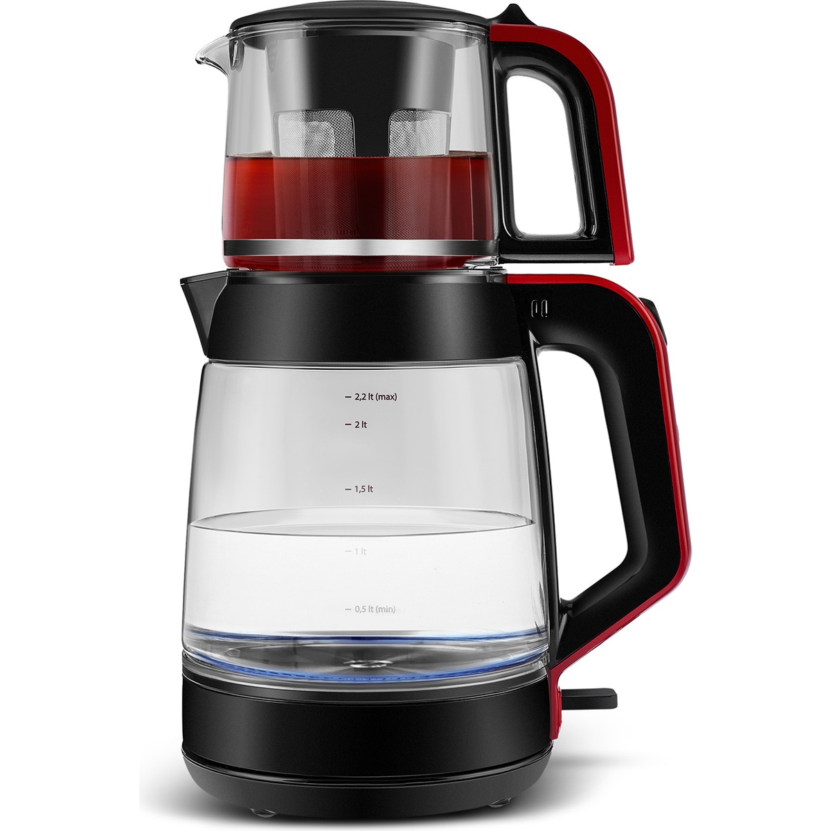 Karaca Glass Tea XL 2 in 1 Cam Su Isıtıcı & Çay Makinesi Kırmızı