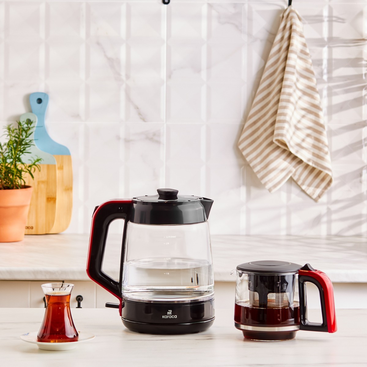 Karaca Glass Tea Xl 2 In 1 Cam Su Isıtıcı & Çay Makinesi Kırmızı