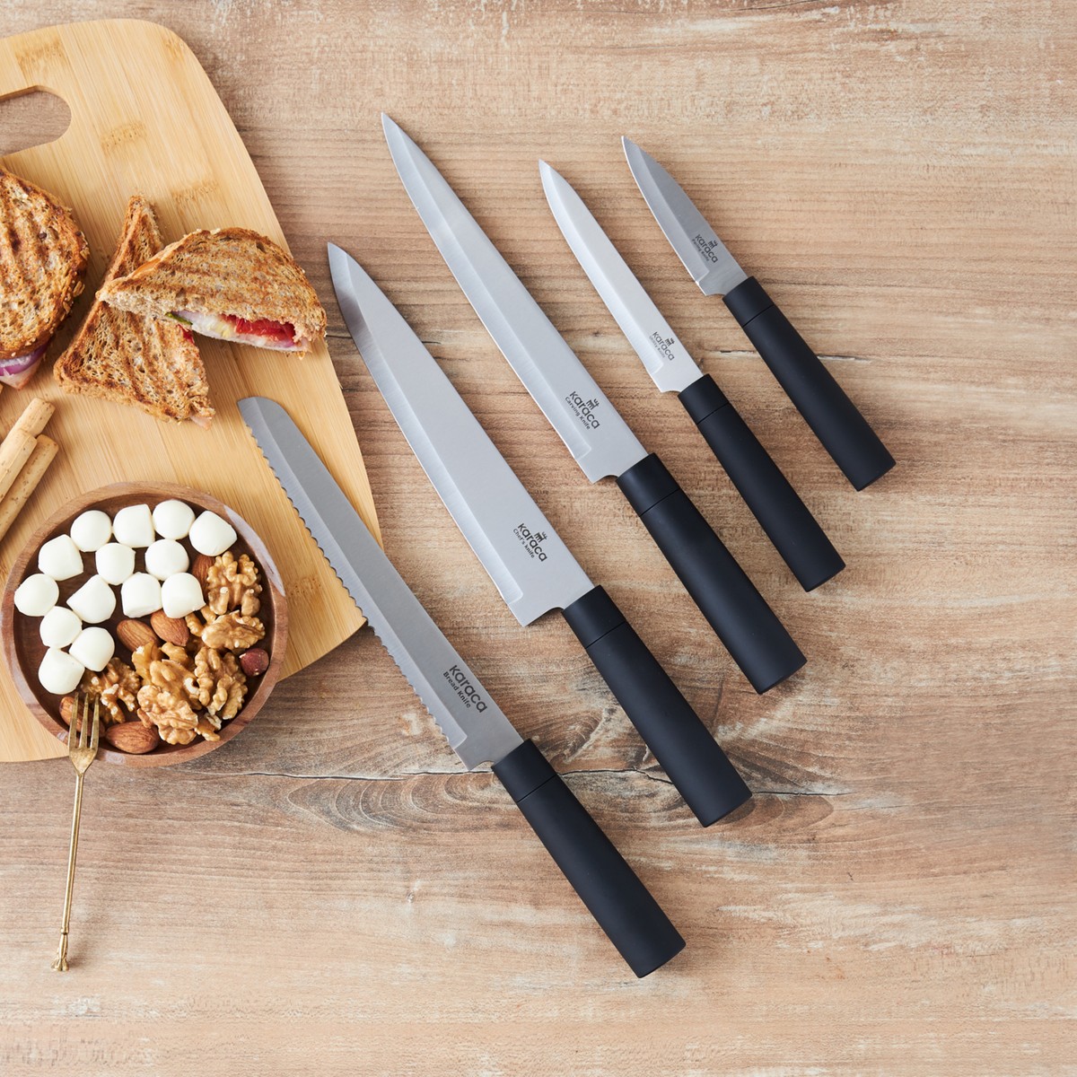 Set İçeriği: Temel mutfak bıçaklarını içerir (aşçı bıçağı, ekmek bıçağı, vb.).
