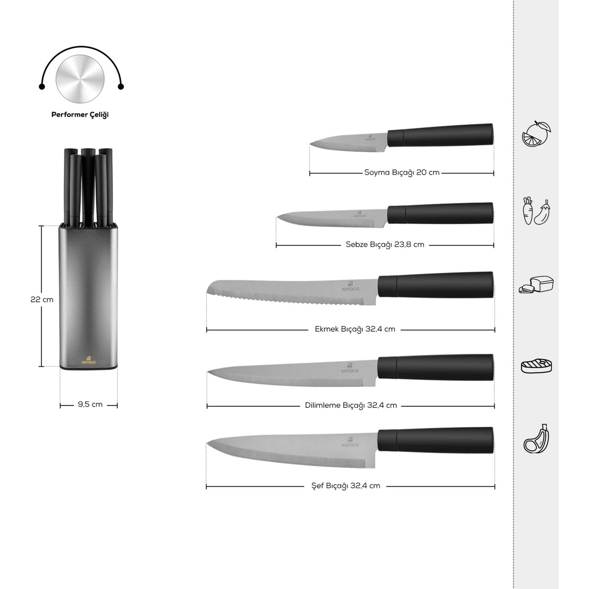 Karaca Grammy Inox 6 Parça Standlı Bıçak Seti